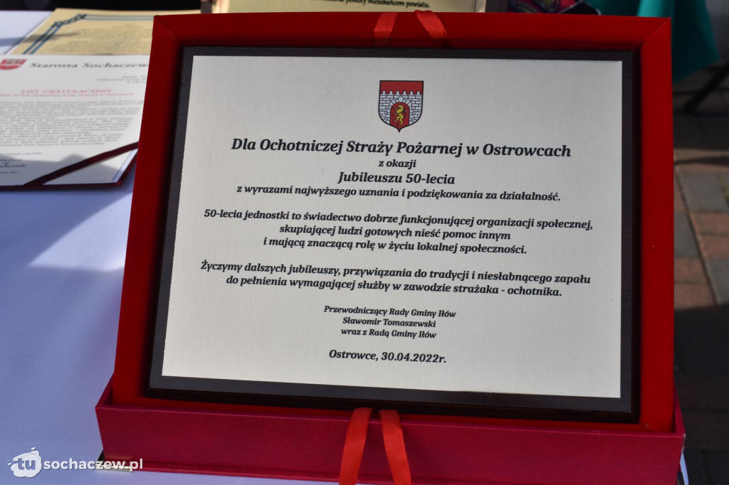 - Drodzy strażacy kieruje do was słowa uznania, za waszą ciężką pracę. Jubileusz 50-lecia to ważna data w historii jednostki OSP w Ostrowcach. Przekazujemy wyrazy uznania dla dotychczasowej działalności. 50-lecie jednostki do świadectwo dobrze funkcjonującej organizacji społecznej, skupiającej ludzi gotowych nieść pomoc innym i mającą znaczącą rolę w życiu lokalnej społeczności. Życzymy dalszych jubileuszy, przywiązania do tradycji i niesłabnącego zapału do pełnienia wymagającej służby w zawodzie strażaka ochotnika. Na drzewcu sztandaru OSP Ostrowce znajduje się gwóźdź wbity moją ręką w roku 2000 w 30. rocznicę powstania jednostki. Dziękuję, że jestem z tą jednostką tak długi czas. A dziś po raz pierwszy jestem w mundurze strażackim.