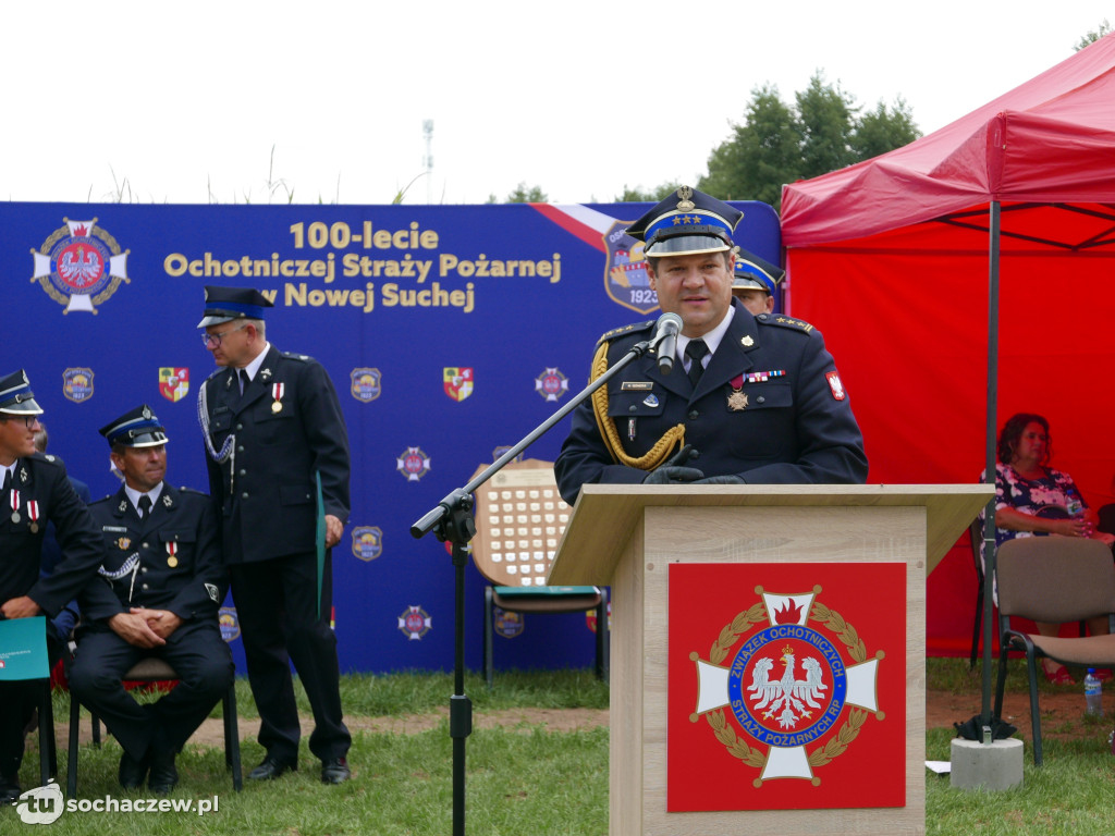 Zastępca Mazowieckiego Komendanta Wojewódzkiego PSP st. bryg. Artur Gonera z okazji 100-lecia powstania jednostki, wręczył Prezesowi OSP w Nowej Suchej pamiątkowy obraz przedstawiający Katedrę św. Michała Archanioła i św. Floriana w Warszawie, nazywaną „Świątynią mazowieckich strażaków”. Komendant podczas swojego wystąpienia podziękował druhom, podkreślając ich zaangażowanie w codzienną, często niebezpieczną służbę, a także złożył życzenia ich rodzinom.