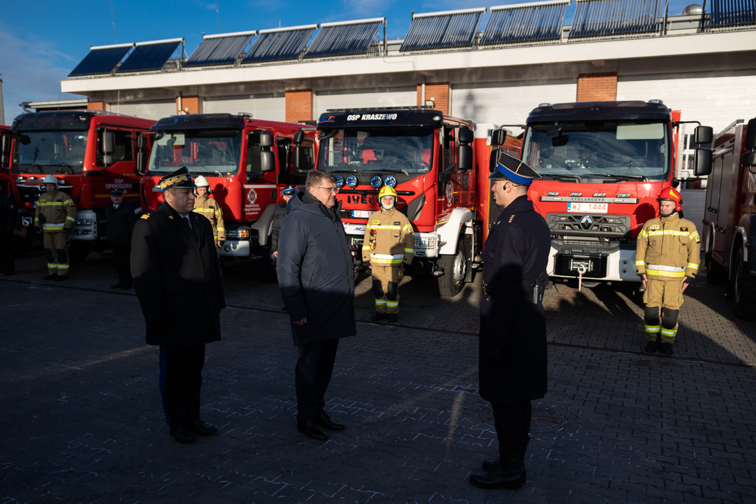 Sekretarz stanu w MSWiA podkreślił, że przekazanie pojazdów to efekt współpracy, m.in. z samorządami oraz Narodowym Funduszem Ochrony Środowiska i Gospodarki Wodnej.