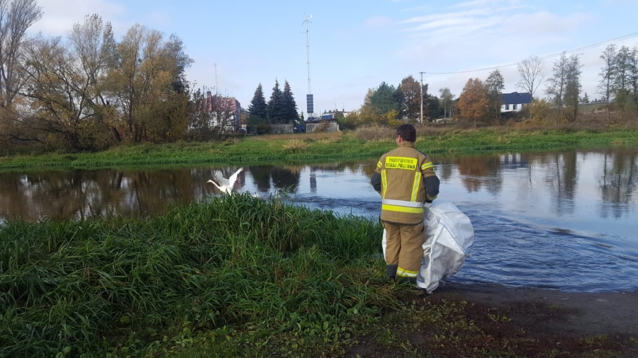 25 października, kilka minut po godzinie 10, otrzymaliśmy zgłoszenie o łabędziu, który utknął w otwartym osadniku, około 2 metrów poniżej gruntu, na terenie zakładu produkcyjnego przy ul. 15 sierpnia w Sochaczewie. Działania zastępu z sochaczewskiej JRG PSP polegały na schwytaniu ptaka, którego następnie przewieziono i wypuszczono nad Bzurą.