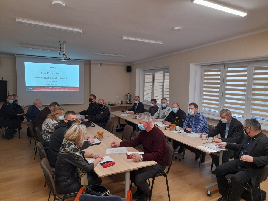 14 stycznia 2021 roku w siedzibie Komendy Powiatowej Państwowej Straży Pożarnej w Sochaczewie odbyło się spotkanie kadry kierowniczej komendy z wójtami gmin, prezesami zarządów oddziałów ZOSP RP (powiatowego i gminnych) oraz komendantami gminnymi OSP.