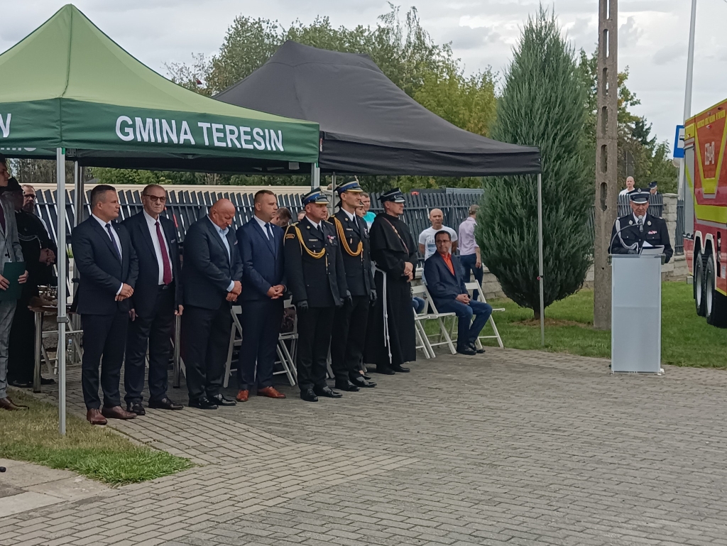 Na wstępie przybyłych gości powitał dh Andrzej Tkaczyk - Prezes OSP Paprotnia. Następnie głos zabrał Marek Olechowski - Wójt Gminy Teresin, przedstawiając okoliczności pozyskania pojazdu i dziękując wszystkim zaangażowanym.