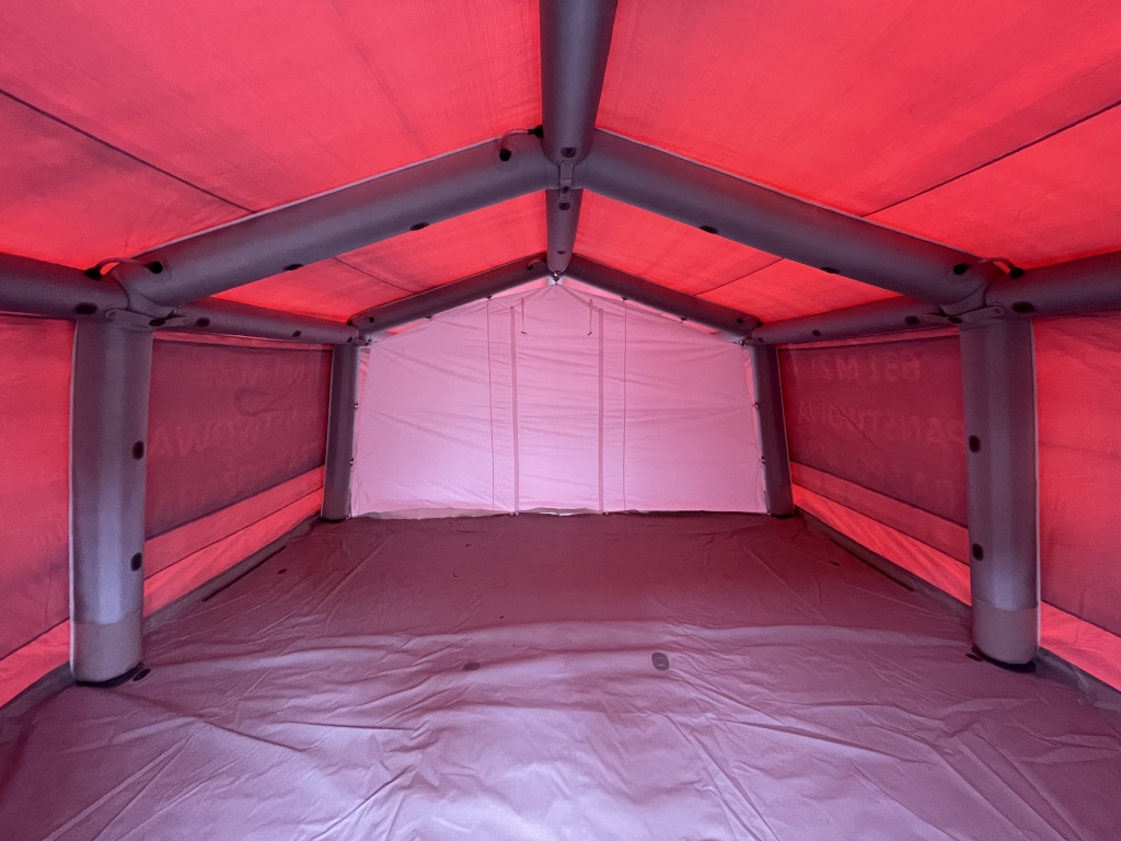 Namiot posiada niezbędne wyposażenie: nagrzewnicę z termostatem, niezależne oświetlenie oraz trzy różne możliwości zasilania w powietrze podczas rozstawiania. Pozwala to na wykorzystanie namiotu jako schronienia podczas ewakuacji ludzi, zwłaszcza, gdy działania ratowniczo-gaśnicze są prowadzone długotrwale w warunkach zimowych.