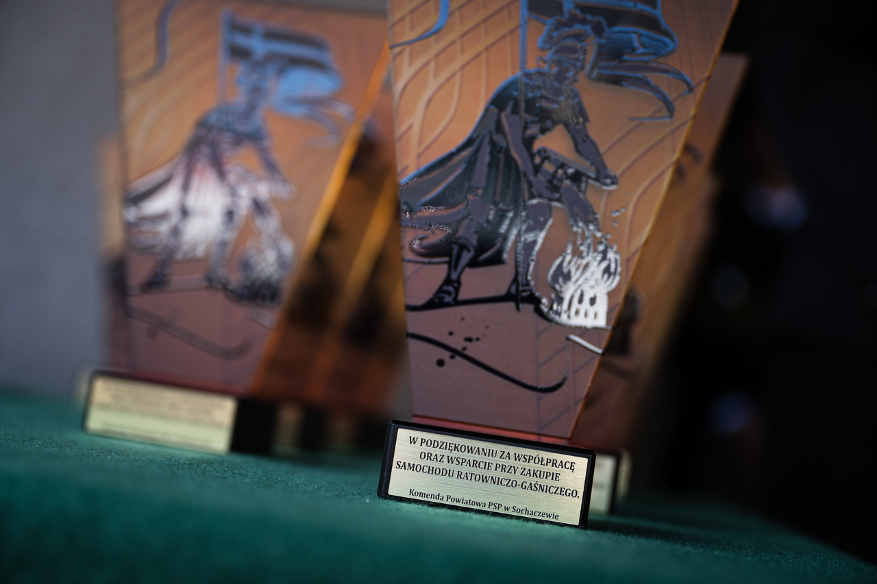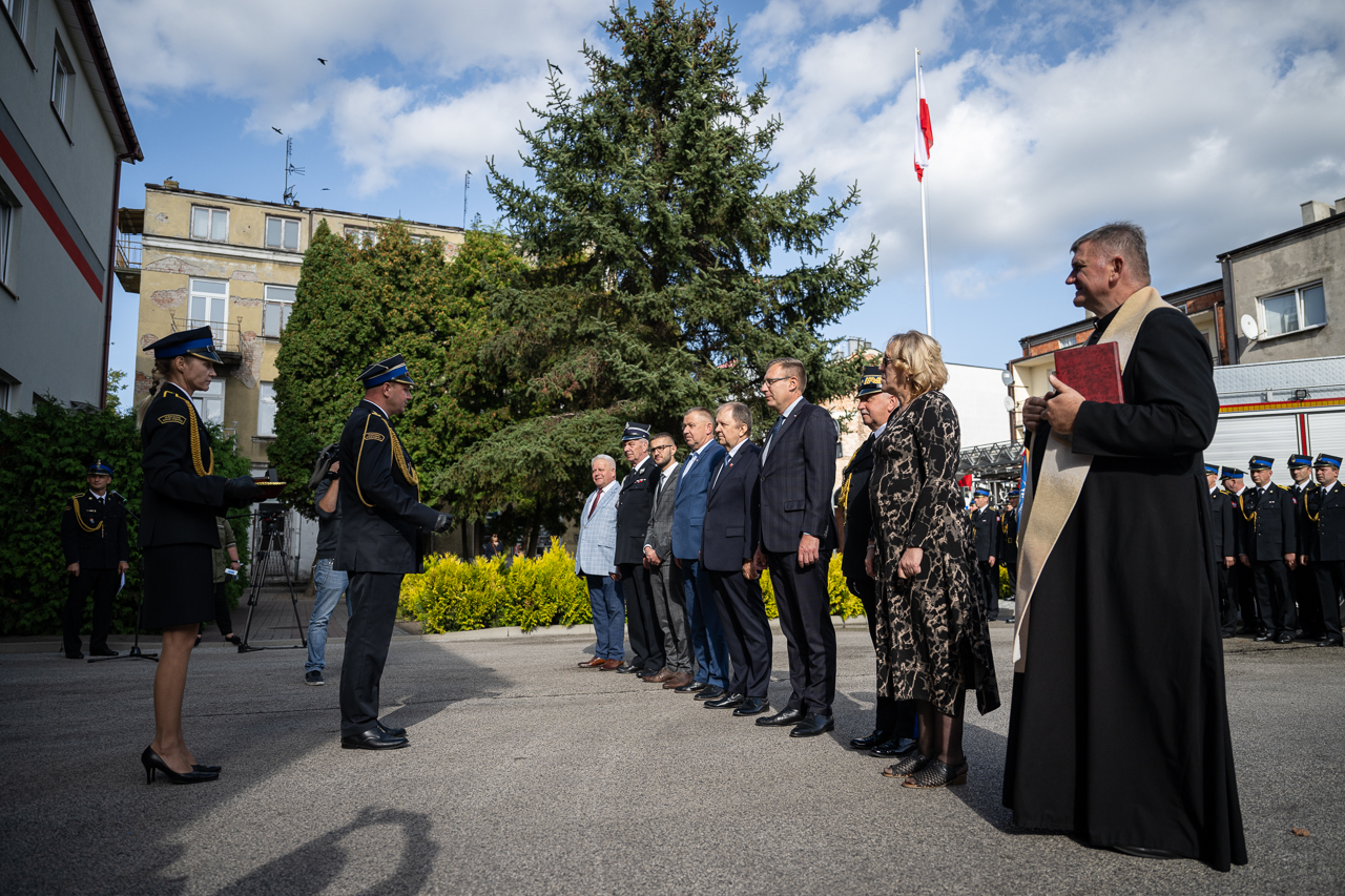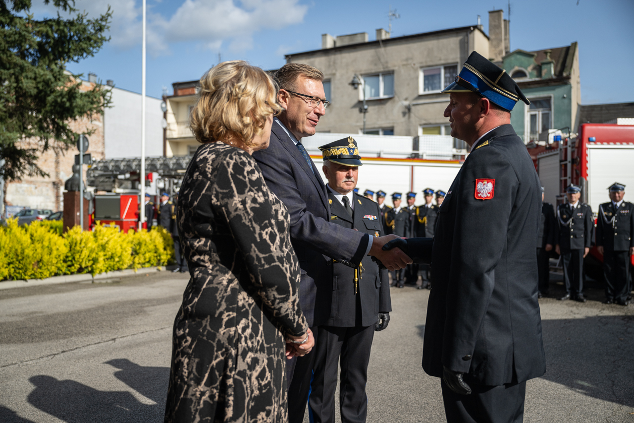 Uroczystego wręczenia aktu przekazania i kluczyków do nowego pojazdu dokonali: Pan Maciej Małecki - Sekretarz Stanu w Ministerstwie Aktywów Państwowych, Pani Jolanta Gonta - starosta sochaczewski oraz Mazowiecki Komendant Wojewódzki PSP nadbryg. Jarosław Piotrowski.