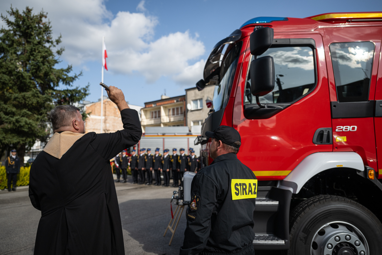 Dopełnieniem uroczystości było poświęcenie pojazdu przez ks. Piotra Żądło - Proboszcza Parafii św. Wawrzyńca w Sochaczewie. Zaproszeni goście w swoich okolicznościowych przemówieniach gratulowali nowego sprzętu, a także życzyli jego bezpiecznego użytkowania.