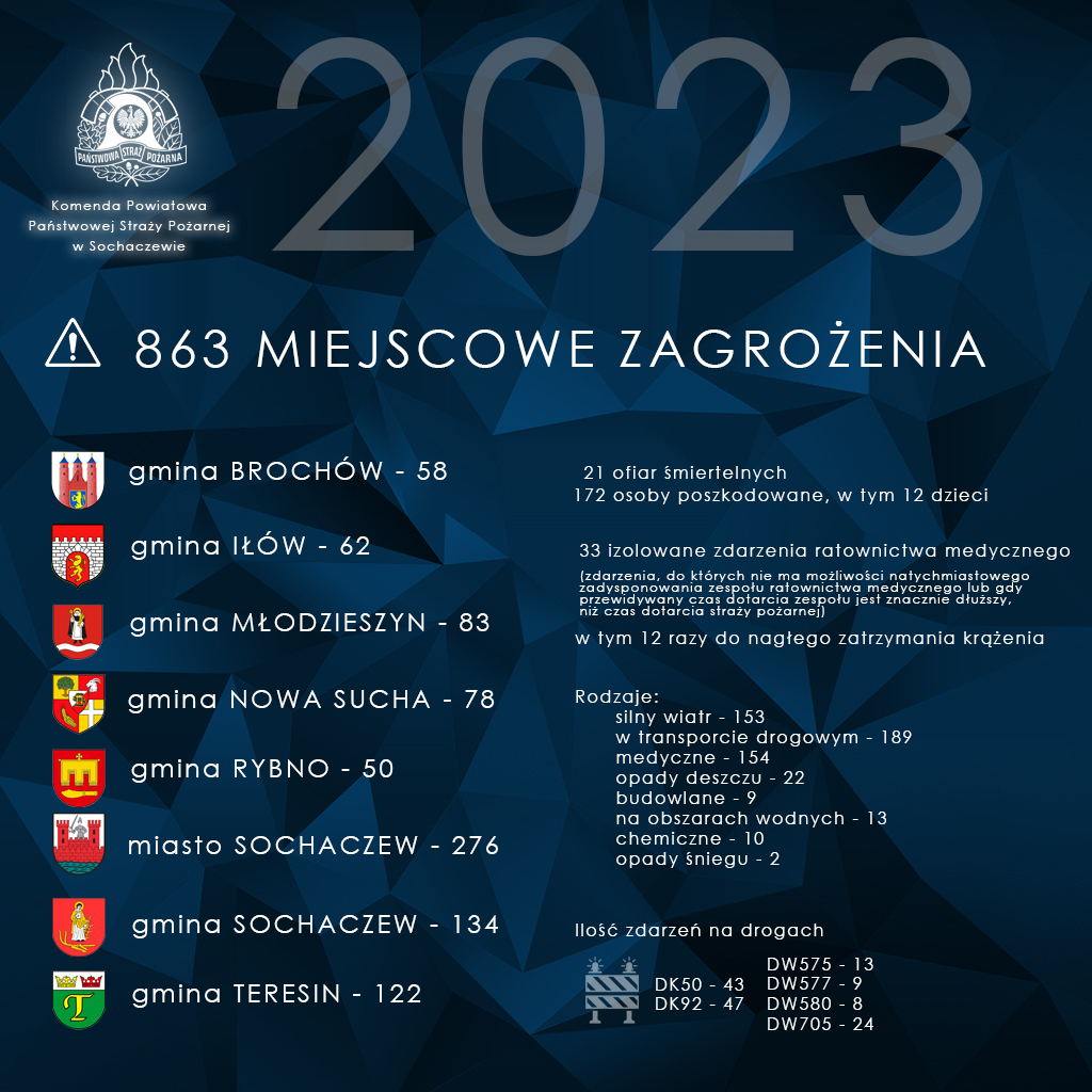 863 miejscowe zagrożenia (1364 zdarzeń w 2022 roku),