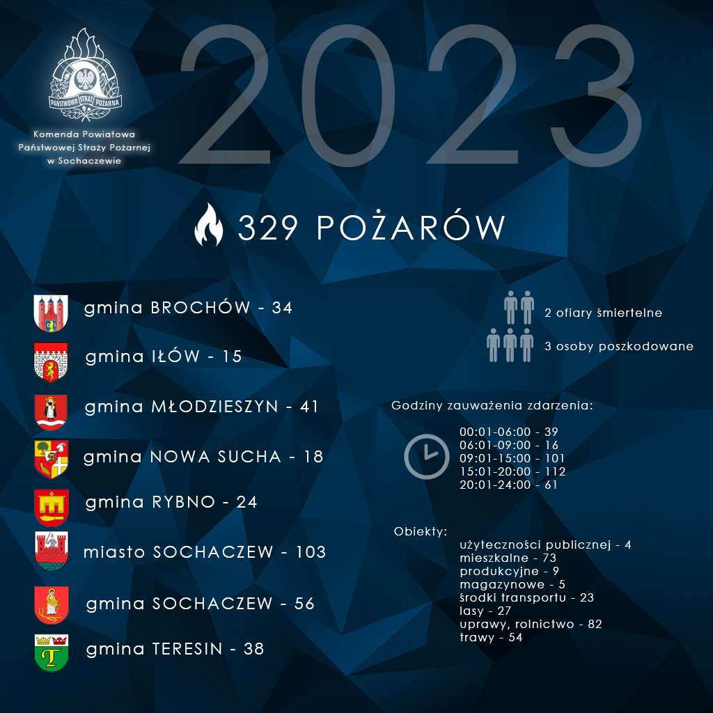 W 2023 roku strażacy na terenie powiatu sochaczewskiego odnotowali: