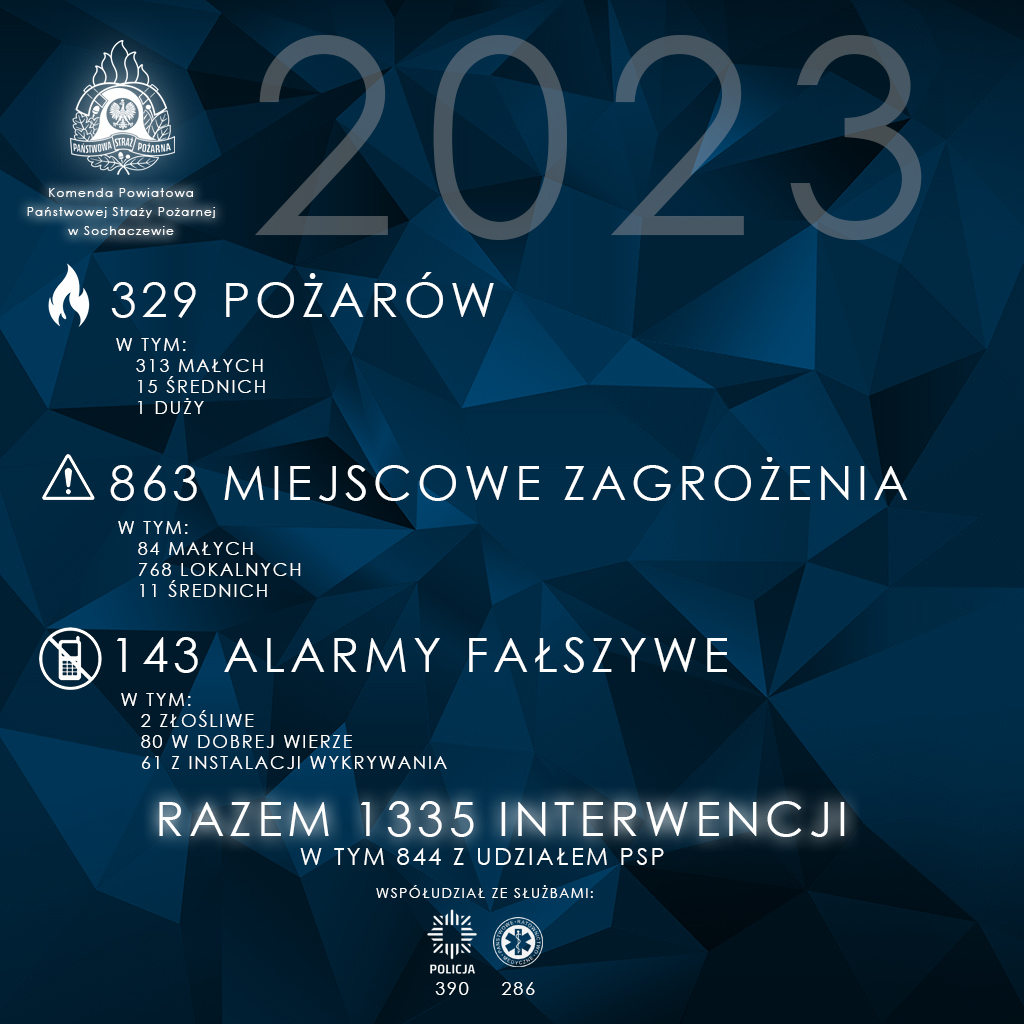 W sumie przeprowadzono 1335 interwencji, co w porównaniu z liczbą 1939 w 2022 roku daje spadek o 31,2%.