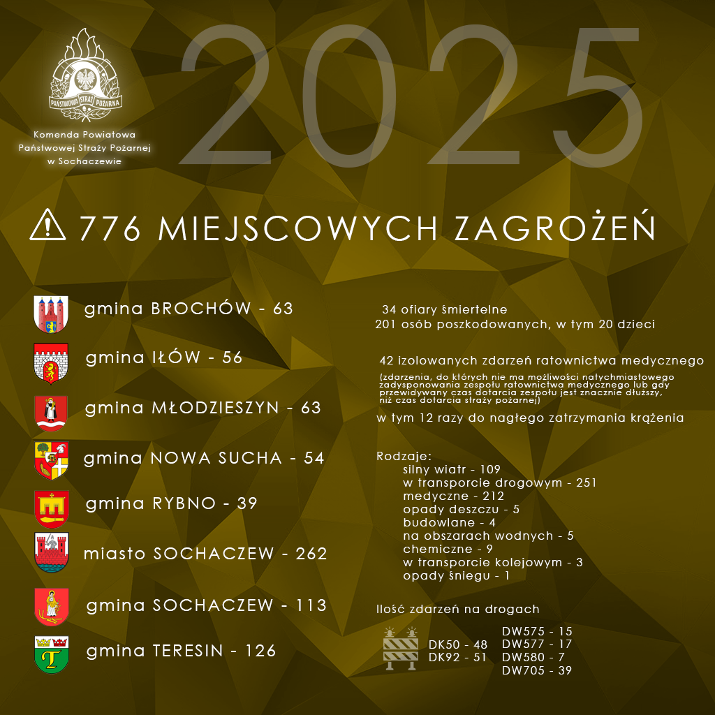 776 miejscowych zagrożeń (913 zdarzeń w 2024 roku),