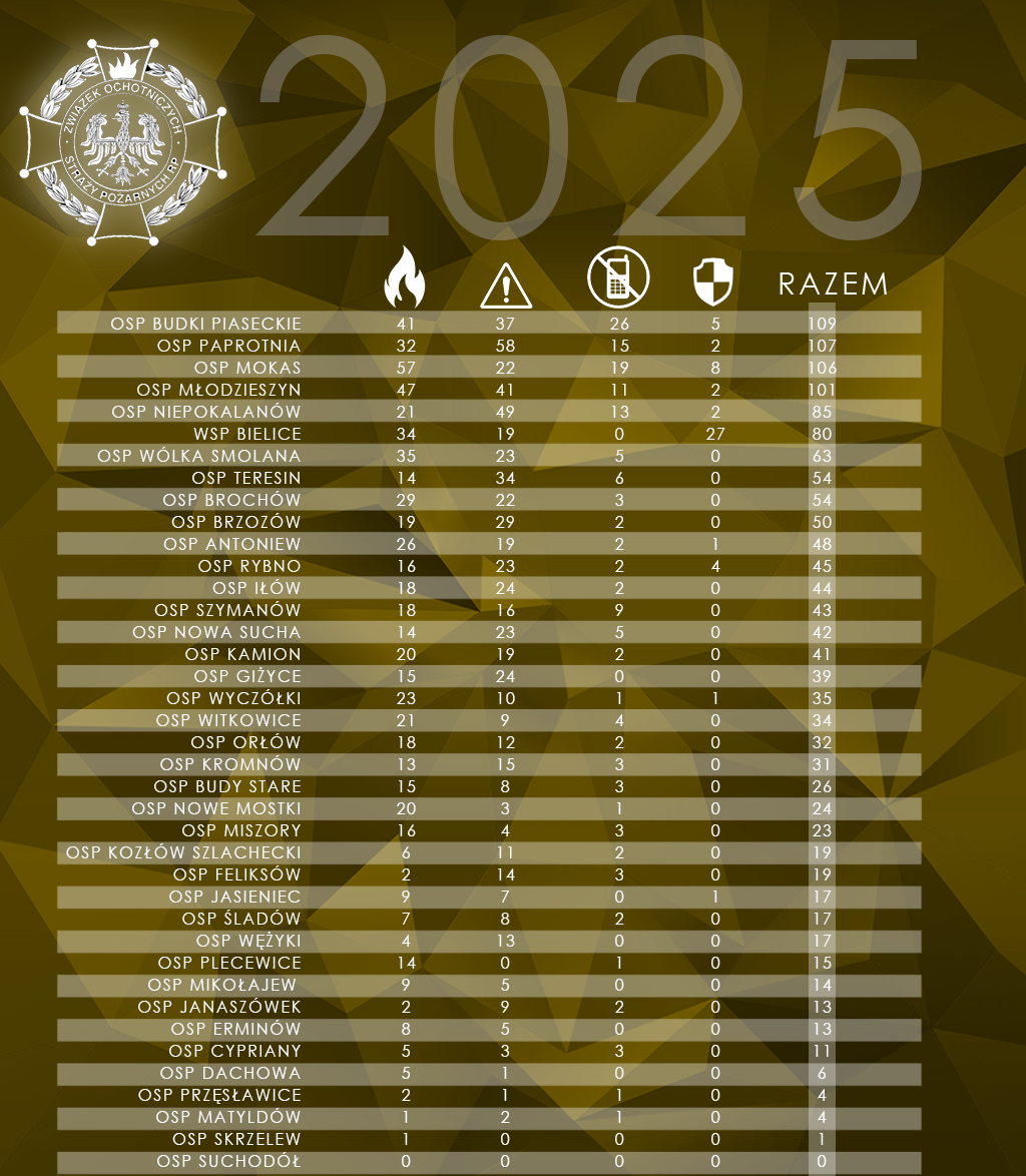 W 2025 roku strażacy na terenie powiatu sochaczewskiego odnotowali: