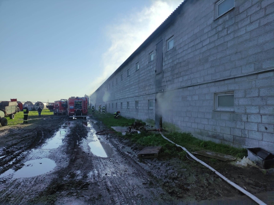 Po dojeździe ustalono, że pali się w dwukondygnacyjnym budynku inwentarskim. Wewnątrz całego budynku panowało silne zadymienie, a źródło pożaru nie było zlokalizowane.