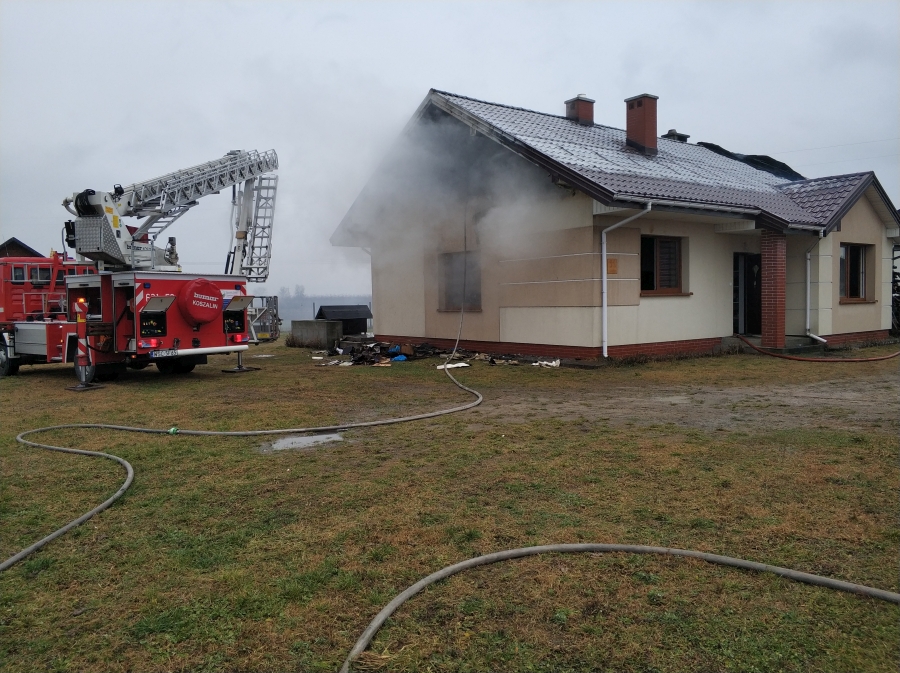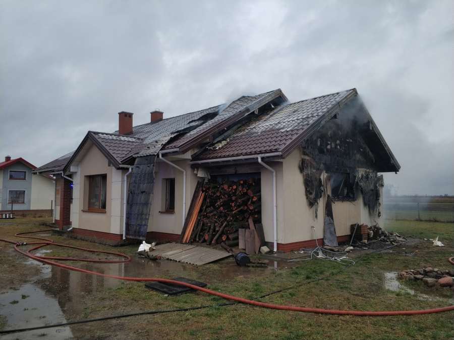 Po przybyciu na miejsce zdarzenia zastano pożar w fazie rozwiniętej garażu oraz poddasza murowanego budynku jednorodzinnego. Spod całej połaci dachu wydobywał się gęsty dym, a z okien ścian szczytowych wychodziły płomienie. W chwili powstania zdarzenia w budynku przebywały cztery osoby, które opuściły dom przed przybyciem zastępów straży pożarnej. Jedna z nich, w związku z oparzeniami ciała, wymagała pomocy medycznej.