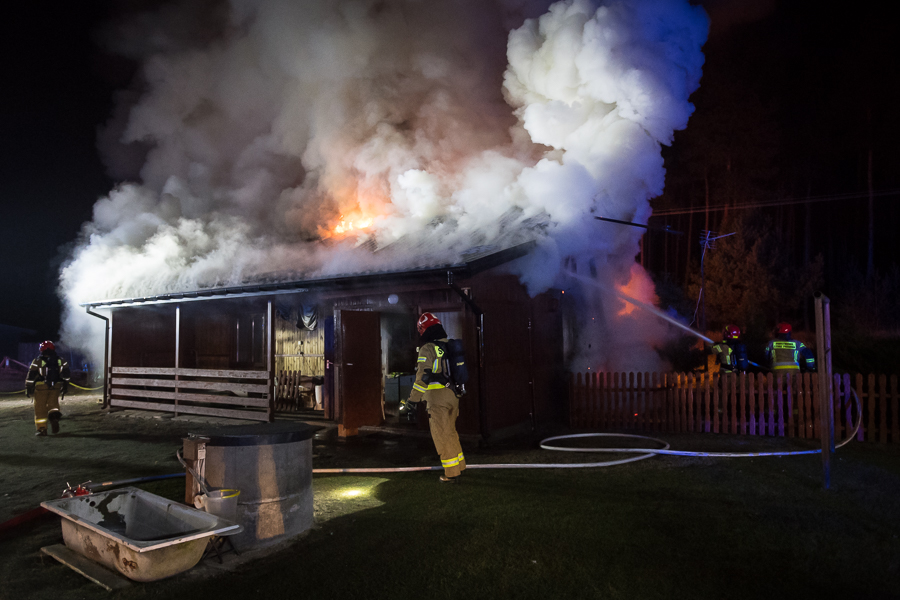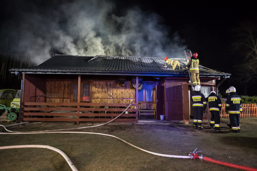 Po dojeździe na miejsce stwierdzono, że pożarem objęte jest poddasze parterowego, drewnianego budynku mieszkalnego. Zamieszkujący dom lokator opuścił budynek przed dojazdem straży pożarnej i nie odniósł żadnych obrażeń.
