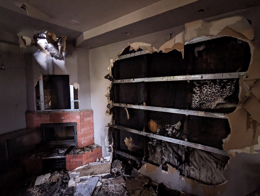 Strażacy zabezpieczyli miejsce zdarzenia, a po odłączeniu dopływu prądu przystąpili do gaszenia pożaru jednym strumieniem wody. Sukcesywnie prowadzono prace rozbiórkowe celem dotarcia do ukrytych zarzewi ognia, które lokalizowano przy użyciu kamer termowizyjnych. Równolegle ewakuowano z budynku część mienia.