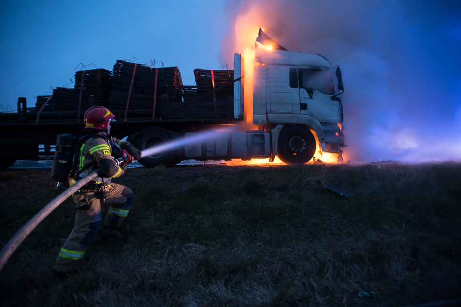 Pożar samochodu ciężarowego na obwodnicy Sochaczewa