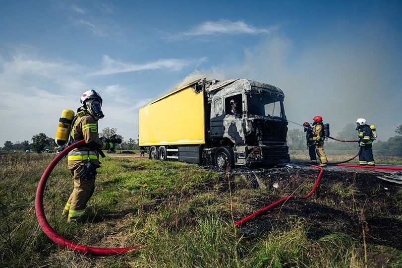 Po dojeździe stwierdzono, że pożarem w całości objęta jest kabina pojazdu, a ogień rozprzestrzenia się na część załadunkową. Kierujący samochodem po zauważeniu oznak pożaru zjechał na pobocze, wysiadł i nie odniósł żadnych obrażeń.