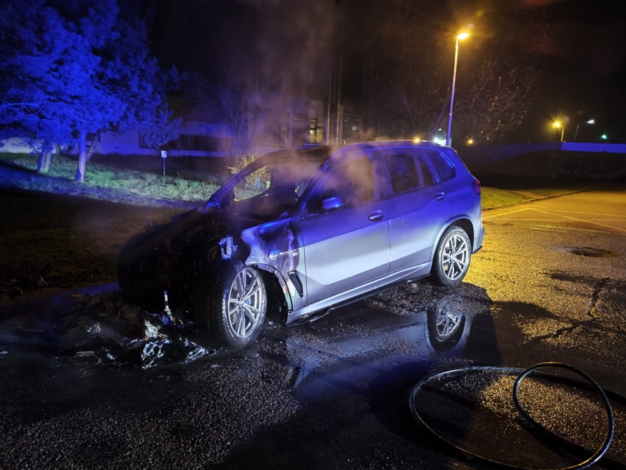 Po dojeździe stwierdzono, że pożarem w całości objęty jest samochód osobowy marki BMW.