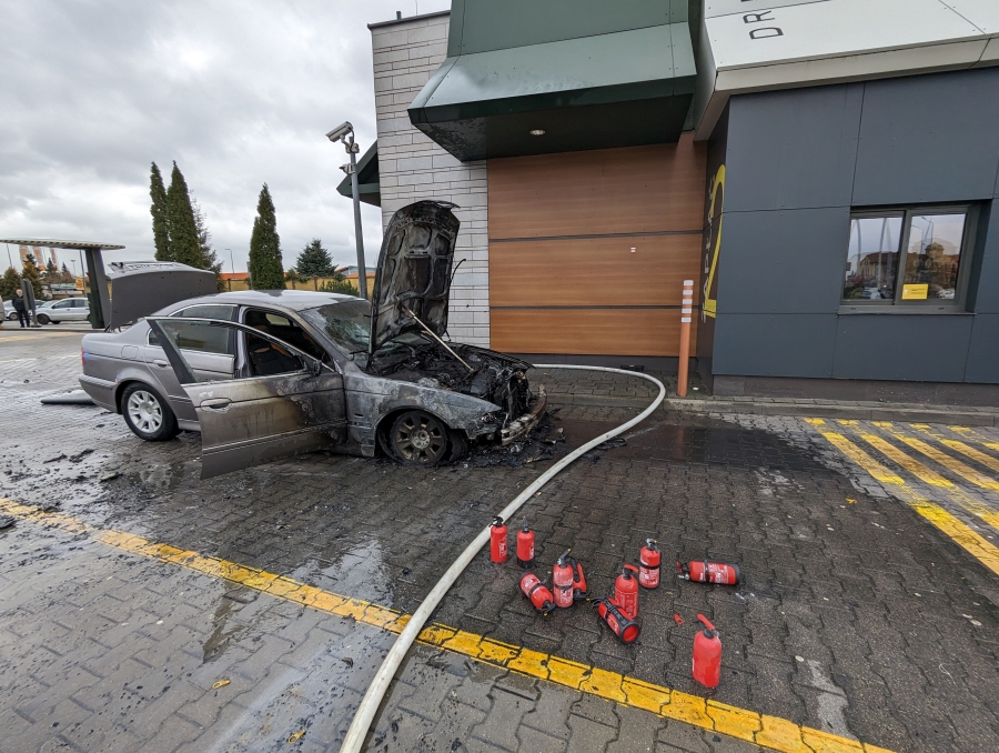 Przybyli na miejsce strażacy zastali objęty w połowie ogniem samochód osobowy. Osoba kierująca pojazdem po zauważeniu oznak pożaru wysiadła i nie odniosła żadnych obrażeń.