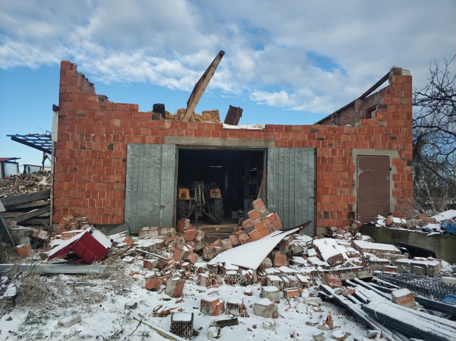 - uszkodzone bądź zniszczone dachy na 8 budynkach gospodarczych,