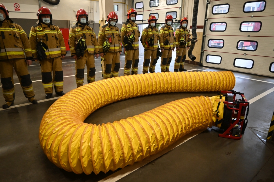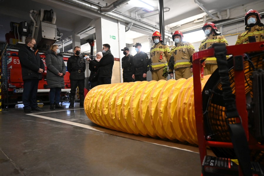 - Jest wyposażony w najnowszą generację systemu ukierunkowującego strumień powietrza PowerStream, która daje użytkownikowi większą swobodę w zakresie usytuowania wentylatora, redukuje jego hałas i wydłuża zasięg aktywnego działania wewnątrz budynku. Dzięki temu wentylatorowi nasi strażacy zyskali dwie, niedostępne do tej pory funkcjonalności. Dzięki zasilaniu elektrycznemu sprzęt będzie mógł być używany wewnątrz budynków, a dwa tryby pracy, nadmuchowy i wyciągowy oraz dodatkowy, kilkumetrowy rękaw umożliwią wyciąganie dymu i wentylację pomieszczeń bez otworu wylotowego – wyjaśnia st. bryg. Piotr Piątkowski. – To nie wszystko, bo otrzymaliśmy również kurtynę dymową, którą montuje się w drzwiach np. wejściowych do mieszkania z klatki schodowej, ograniczając w ten sposób zadymienie pomieszczeń sąsiednich. Dotychczas na wyposażeniu komendy nie było tego typu kurtyn dymowych, stąd nasza radość jest podwójna. Bardzo dziękujemy władzom powiatu za okazane wsparcie – dodaje. Komendant przypomniał również, że w czasie ostatnich lat, samorząd powiatowy na czele ze starostą Jolantą Gonta niejednokrotnie pomagał KP PSP w Sochaczewie w strażackim doposażeniu. – Licząc od 2015 roku nasza komenda otrzymała od samorządu powiatowego m.in. plandeki do zabezpieczania uszkodzonych dachów, kilkadziesiąt kompletów ubrań specjalnych strażaka, pompę beczkową do substancji ropopochodnych. Były to zakupy dofinansowane z Wojewódzkiego Funduszu Ochrony Środowiska i Gospodarki Wodnej w Warszawie. Łączna ich wartość przekracza kwotę 46 tys. zł. Do tego doliczmy jeszcze otrzymane środki w wysokości 18 tys. zł na naprawę nawierzchni placu przed budynkiem strażnicy, jak również 200 tys. zł dofinansowania na przebudowę budynku strażnicy i to obrazuje znaczącą pomoc powiatu – informuje st. bryg. Piotr Piątkowski.
