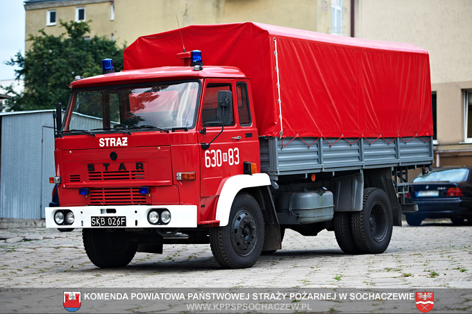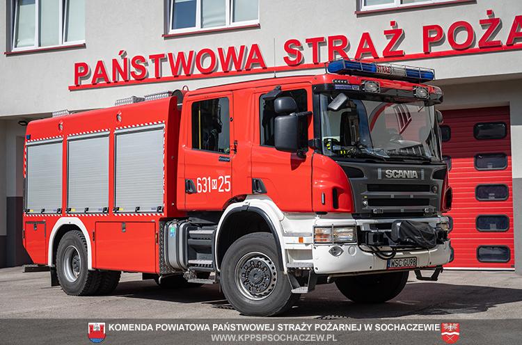 631[M]21 – GBA 3,2/28 Volvo FL 4x4 – średni samochód ratowniczo-gaśniczy wyposażony w zbiornik na wodę o pojemności 3,2 m3 oraz autopompę o wydajności 2800 litrów/minutę przy ciśnieniu 8 bar. W sochaczewskiej jednostce pojazd pełni rolę „pierwszego wyjazdowego”. Zabudowa Bocar. Rok produkcji 2023.