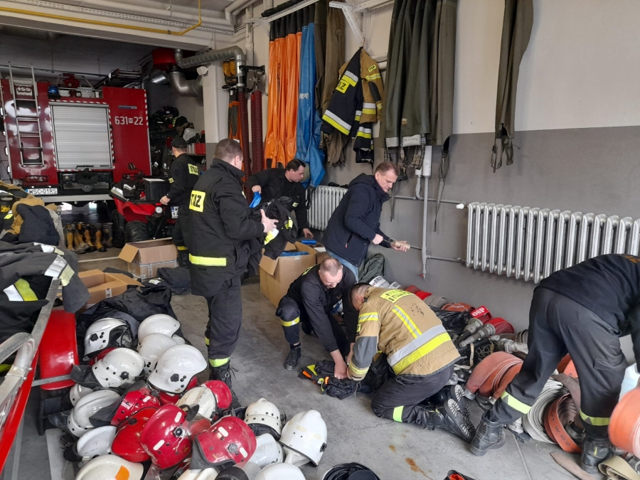 Zebrane wyposażenie trafiło do Komendy Wojewódzkiej PSP w Warszawie, skąd w specjalnym strażackim konwoju przewożone jest do potrzebujących.