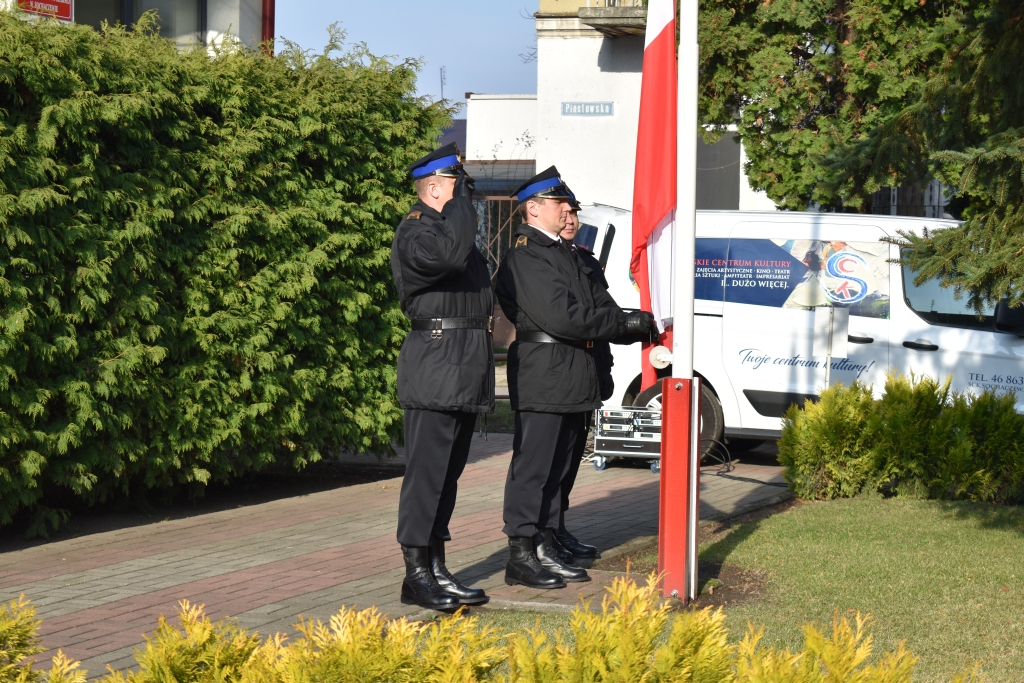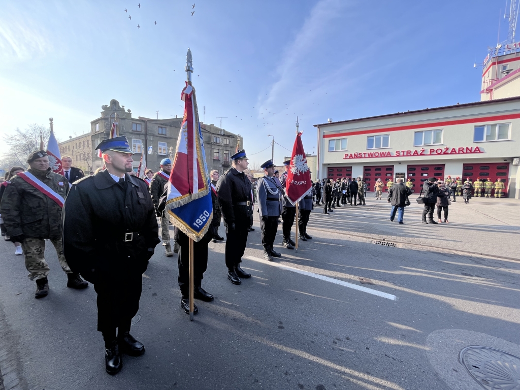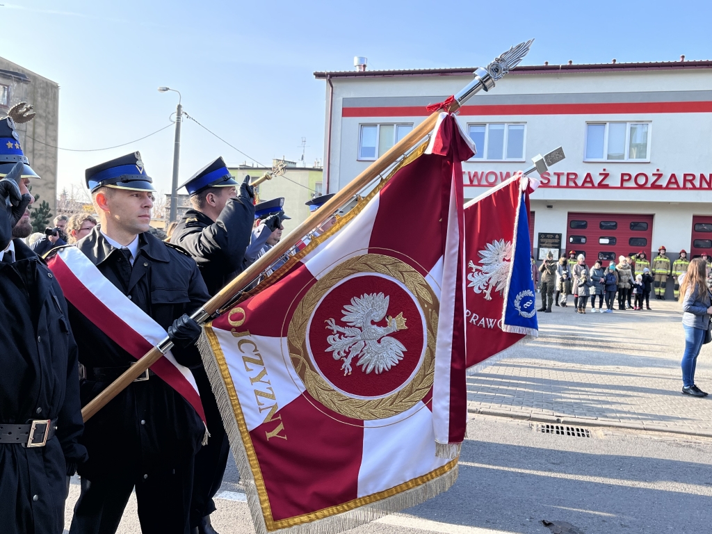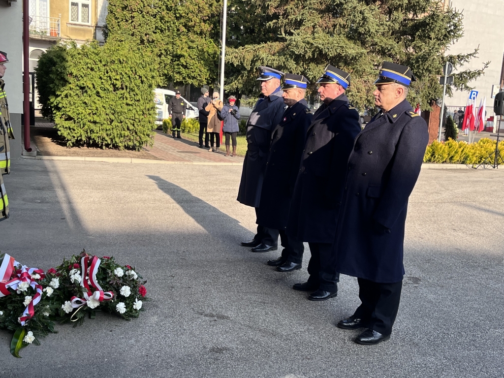 Delegacja strażaków złożyła kwiaty przed popiersiem marszałka Józefa Piłsudskiego, a także przed tablicą upamiętniającą czynny udział strażaków w rozbrojeniu okupantów w 1918 roku. Tut. komenda wystawiła również wartę honorową przed ww. tablicą.