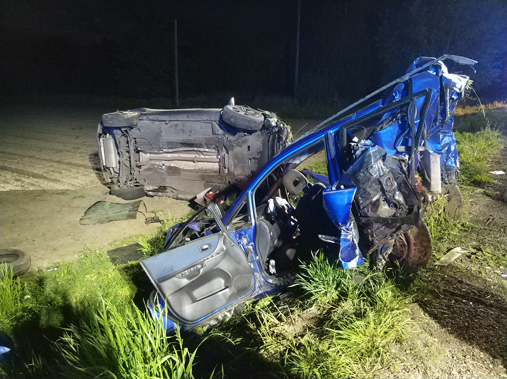 Po przybyciu na miejsce stwierdzono, że doszło do zderzenia samochodów osobowych Mazda oraz Volvo. Pierwszym z pojazdów podróżowało dwóch mężczyzn oraz dziecko w wieku około 4 lat. Mężczyźni pozostawali w zdeformowanym pojeździe, jeden z nich bez funkcji życiowych. Dziecko, przytomne, zostało ewakuowane przez osoby postronne przed przybyciem służb i przekazane zespołowi ratownictwa medycznego, który dojechał wraz z pierwszym zastępem straży pożarnej. Drugim z pojazdów podróżowały dwie kobiety, które wysiadły z niego o własnych siłach.
