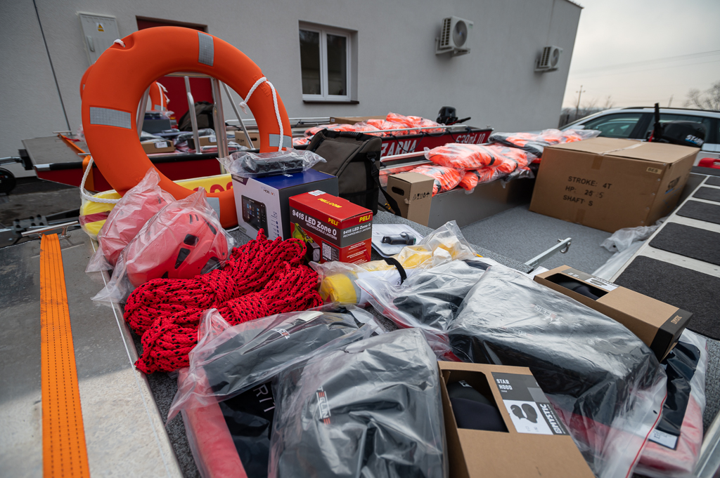 Sprzęt pozyskano w ramach pilotażowego programu zakupu łodzi ratowniczych dla jednostek Ochotniczych Straży Pożarnych z terenu województwa mazowieckiego finansowanego z rezerwy celowej Budżetu Państwa.