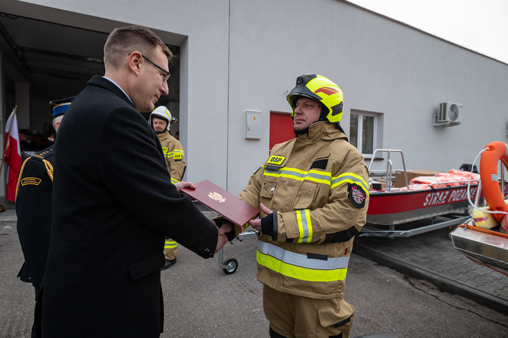 Uroczyste przekazanie łodzi ratowniczych w powiecie sochaczewskim