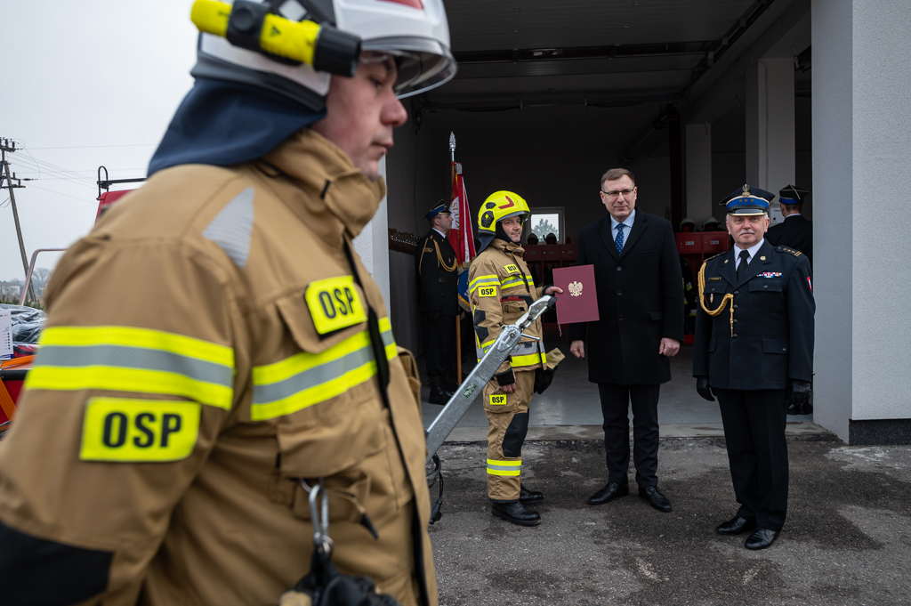 W uroczystości udział wzięli, m.in.: Pan Maciej Małecki - Sekretarz Stanu w Ministerstwie Aktywów Państwowych, st. bryg. Jarosław Piotrowski - Mazowiecki Komendant Wojewódzki Państwowej Straży Pożarnej oraz przedstawiciele władz samorządowych i duchowieństwa.