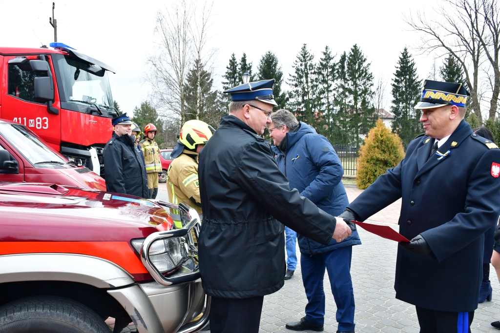 Zakup nowych samochodów ratowniczo-gaśniczych zrealizowany zostanie dzięki zaangażowaniu Ministra Spraw Wewnętrznych i Administracji Pana Mariusza Kamińskiego, Wiceministra Spraw Wewnętrznych i Administracji Pana Macieja Wąsika, Komendanta Głównego PSP nadbryg. Andrzeja Bartkowiaka oraz Mazowieckiego Komendanta Wojewódzkiego PSP nadbryg. Jarosława Nowosielskiego.