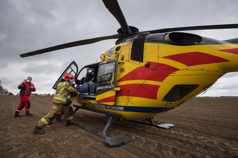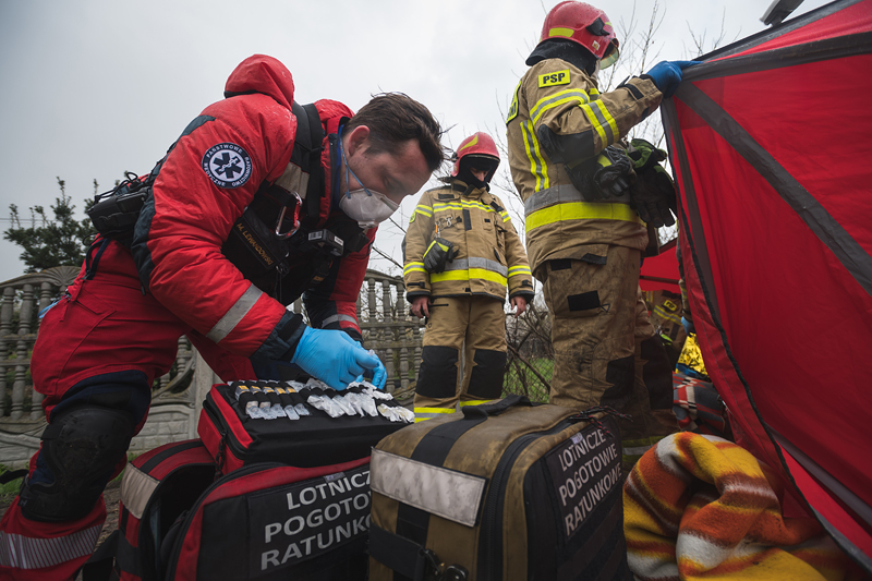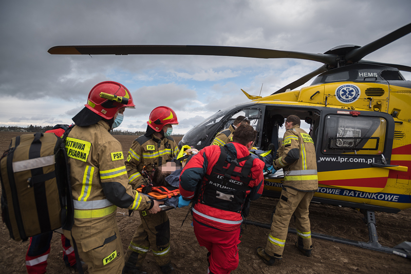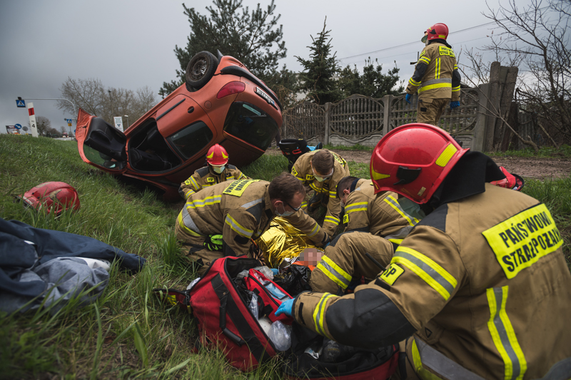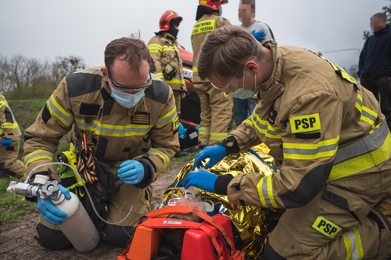 Działania straży pożarnej polegały na zabezpieczeniu miejsca zdarzenia oraz udzieleniu kwalifikowanej pierwszej pomocy poszkodowanym osobom dorosłym. Dziecko nie doznało żadnych obrażeń. 23-letniego kierującego oraz 20-letnią pasażerkę przekazano służbom medycznym - załodze helikoptera Lotniczego Pogotowia Ratunkowego "Ratownik 12" oraz zespołowi ratownictwa medycznego.