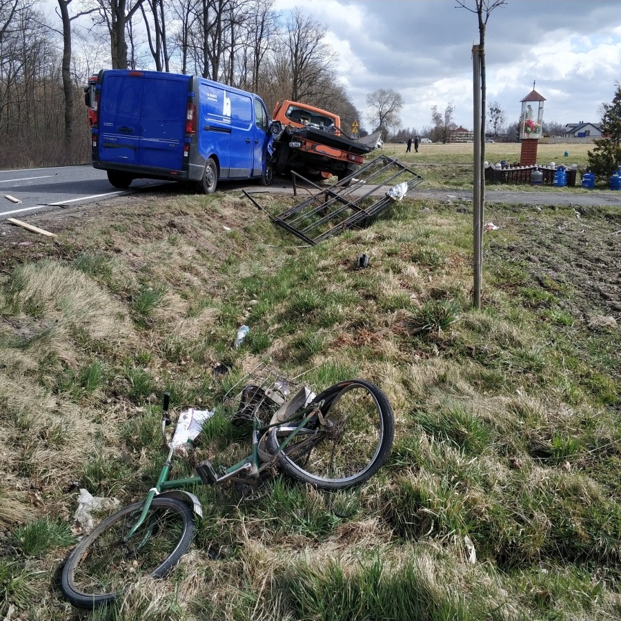 Po dojeździe stwierdzono, że w zdarzeniu uczestniczyły dwa samochody dostawcze Opel i Volkswagen, samochód osobowy Audi oraz rower. Autami podróżowały w sumie 4 osoby, które wysiadły o własnych siłach i nie wymagały udzielenia pomocy medycznej. Na jezdni zastano leżącego, nieprzytomnego rowerzystę. Ponadto jeden z samochodów dostawczych przewoził 52 butle 11kg z gazem propan-butan, które leżały rozrzucone w obrębie miejsca zdarzenia.