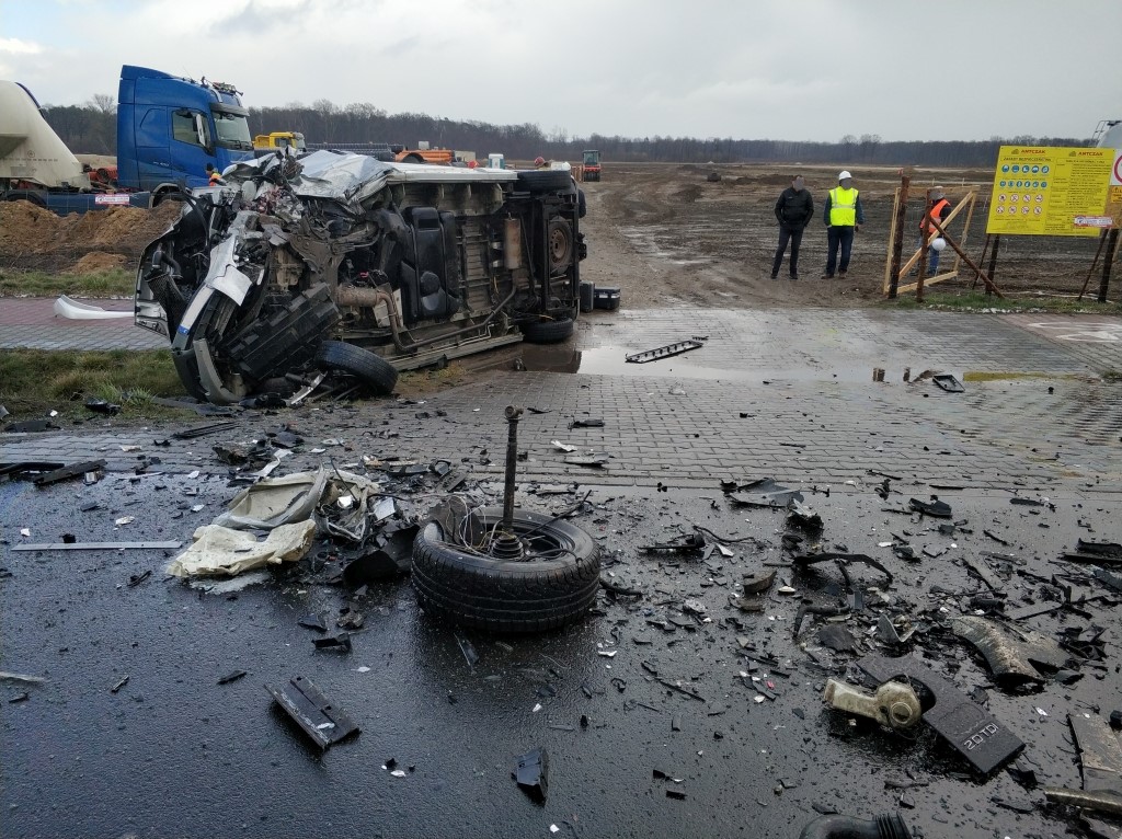 Po dojeździe na miejsce zdarzenia stwierdzono, że doszło do czołowego zderzenia samochodów osobowych marki Audi oraz Opel. Pierwszym z pojazdów podróżował sam kierujący, który pozostawał przytomny w zdeformowanym wraku pojazdu. Drugim samochodem podróżowały trzy osoby, które opuściły auto przed przybyciem zastępów. W wyniku zdarzenia jedna z tych osób także odniosła obrażenia.