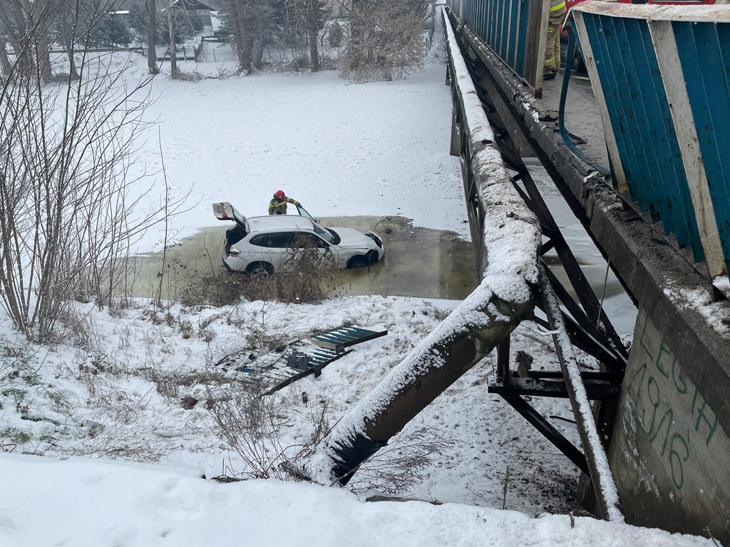 Po dojeździe na miejsce stwierdzono, że doszło do kolizji dwóch samochodów osobowych marki BMW. W wyniku tego jeden z pojazdów zjechał z jezdni, przebił bariery i spadł z mostu do Bzury. Kierujący pojazdami wysiedli o własnych siłach i nie wymagali pomocy medycznej.