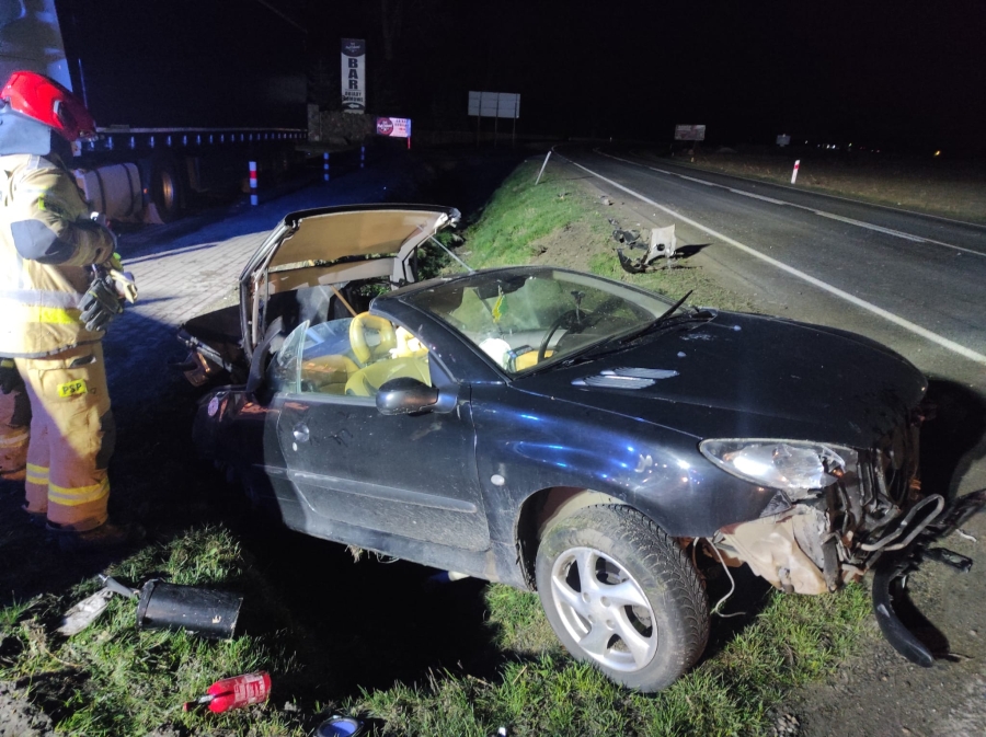 Po dojeździe zastano rozbity samochód osobowy marki Peugeot stojący w przydrożnym rowie. Podróżujący nim kierowca leżał nieprzytomny poza autem. Mężczyzna miał zachowane funkcje życiowe.
