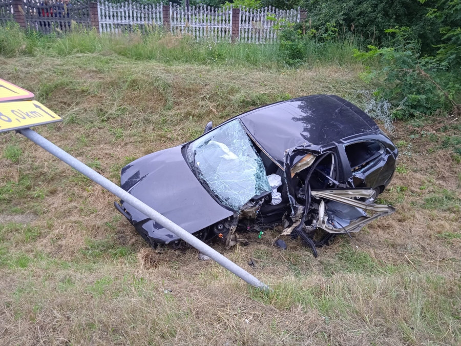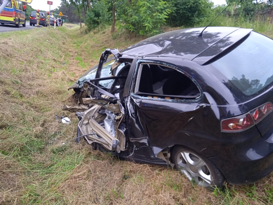 Po dojeździe i zabezpieczeniu miejsca zdarzenia stwierdzono, że samochód osobowy marki Seat uderzył w słup sygnalizacji świetlnej, a następnie wpadł do przydrożnego rowu. Pojazdem podróżowały cztery osoby, w chwili przybycia wszystkie znajdowały się poza rozbitym autem. Na miejscu zdarzenia obecny był już zespół ratownictwa medycznego, który udzielał pomocy jednej z osób poszkodowanych. Drugiej poszkodowanej osobie, do czasu przybycia drugiego zespołu, kwalifikowanej pierwszej pomocy udzielili strażacy. Pozostałe dwie osoby nie wymagały pomocy medycznej.