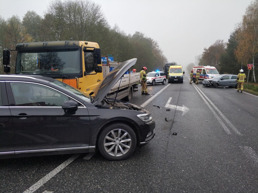 26 października, kilka minut po godzinie 8, na 427 kilometrze drogi krajowej nr 92 w Kożuszkach-Parcel (gmina Sochaczew) doszło do zdarzenia drogowego z udziałem dwóch samochodów osobowych oraz samochodu dostawczego. Pojazdami podróżowali wyłącznie kierujący, z których jeden został poszkodowany i przetransportowany do szpitala. Na miejscu interweniowały dwa zastępy z sochaczewskiej JRG PSP oraz zastęp z OSP Budki Piaseckie.
