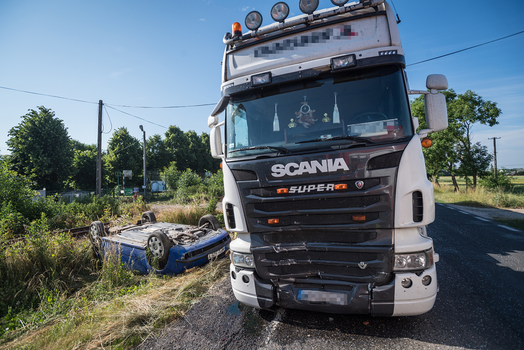 Po dojeździe ustalono, że w zdarzeniu uczestniczył ciągnik siodłowy marki Scania oraz samochód osobowy Skoda Fabia. W wyniku zdarzenia poszkodowana została kierująca samochodem osobowym, która wysiadła o własnych siłach przed przybyciem służb.