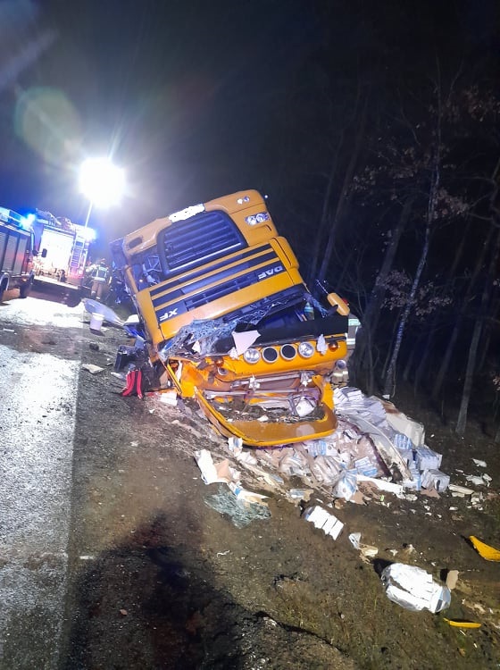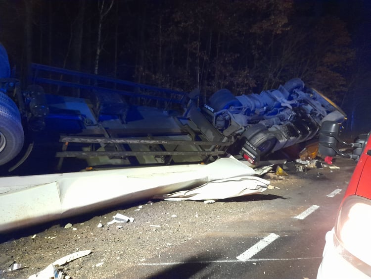 Po przybyciu na miejsce okazało się, że doszło do dachowania zestawu ciężarowego. Kierujący pojazdem wydostał się z niego o własnych siłach.