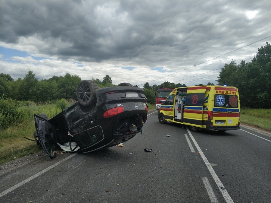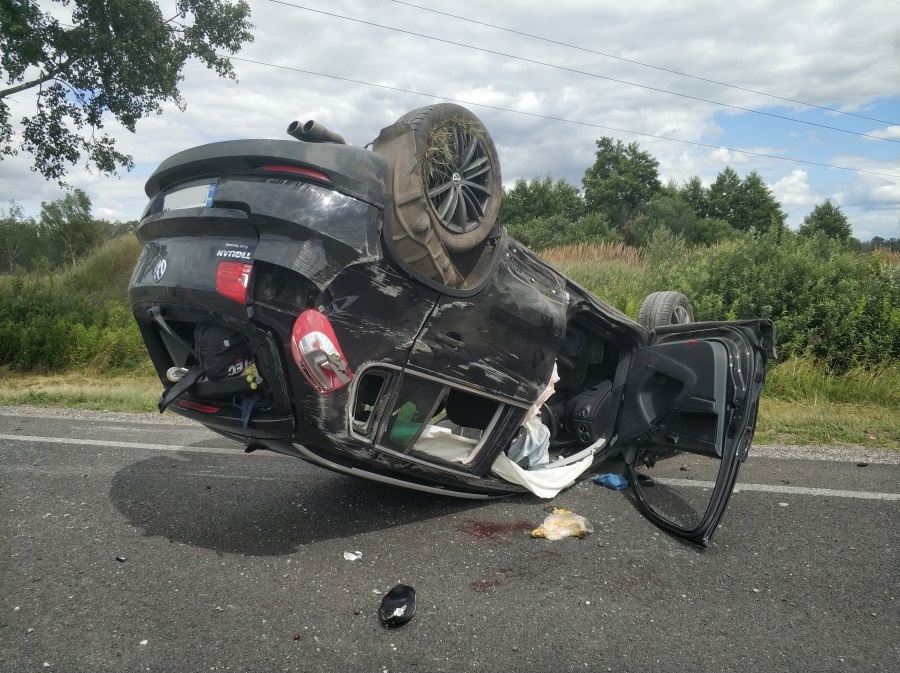 Po dojeździe i przeprowadzeniu rozpoznania ustalono, że doszło do dachowania samochodu osobowego Volkswagen Tiguan po jego zderzeniu z ciągnikiem siodłowym Scania sprzężonym z naczepą. W wyniku tego poszkodowani zostali pasażerowie auta osobowego: kierująca 34-letnia kobieta z trójką dzieci, dwójką 11-letnich chłopców oraz 12-letnią dziewczynką. W chwili przybycia wszyscy znajdowali się poza rozbitym pojazdem.