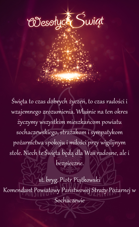 Życzenia Bożonarodzeniowe Komendanta Powiatowego PSP w Sochaczewie