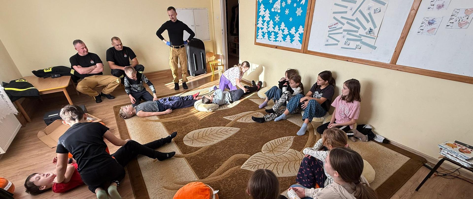 19.01.2026 KP PSP SokółkaSokółka - pogadanka o bezpieczeństwie podczas zimowego wypoczynku.19 stycznia 2026 r. podczas pierwszego dnia ferii zimowych strażacy Komendy Powiatowej PSP spotkali się z dziećmi uczestniczącymi w pierwszym turnusie półkolonii „Ferie w Mieście 2026” zorganizowanym przez Ośrodek Sportu i Rekreacji w Sokółce.