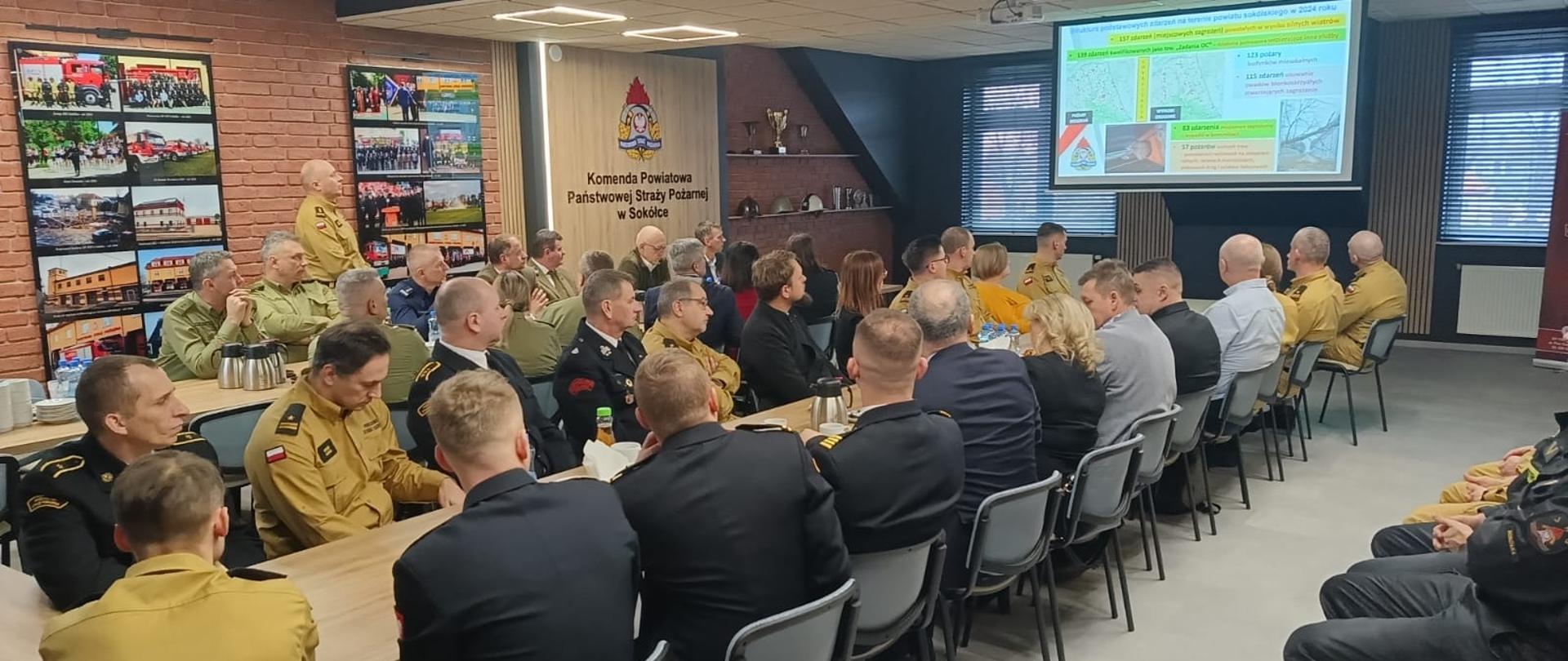 12.02.2026 KP PSP SOKÓŁKAPosumowanie roku 2025 w Komendzie Powiatowej PSP w Sokółce12 lutego 2026 roku w siedzibie Komendy Powiatowej PSP w Sokółce odbyła się odprawa roczna podsumowująca działalności jednostek ochrony przeciwpożarowej powiatu sokólskiego w 2025 roku.