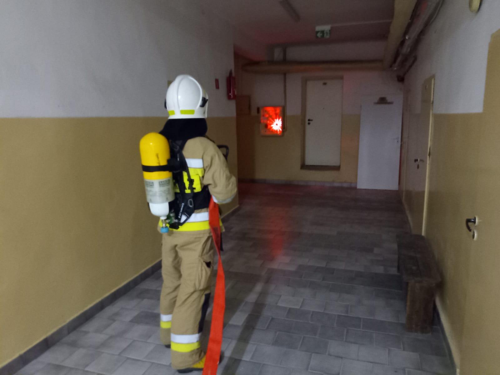 Celem praktycznych ćwiczeń taktyczno – bojowych było doskonalenie umiejętności współdziałania podmiotów ratowniczych podczas akcji gaszenia pożaru w obiekcie.