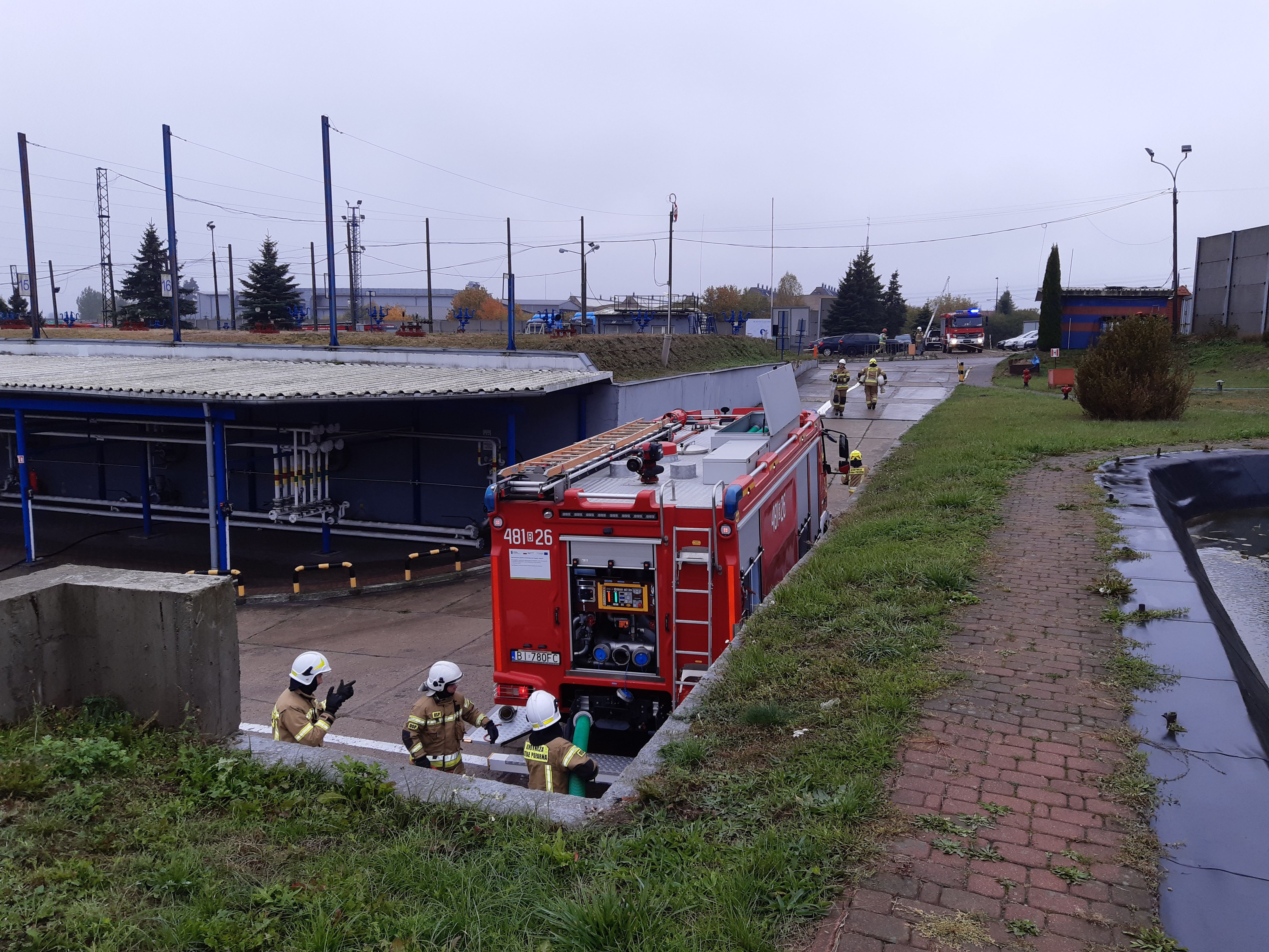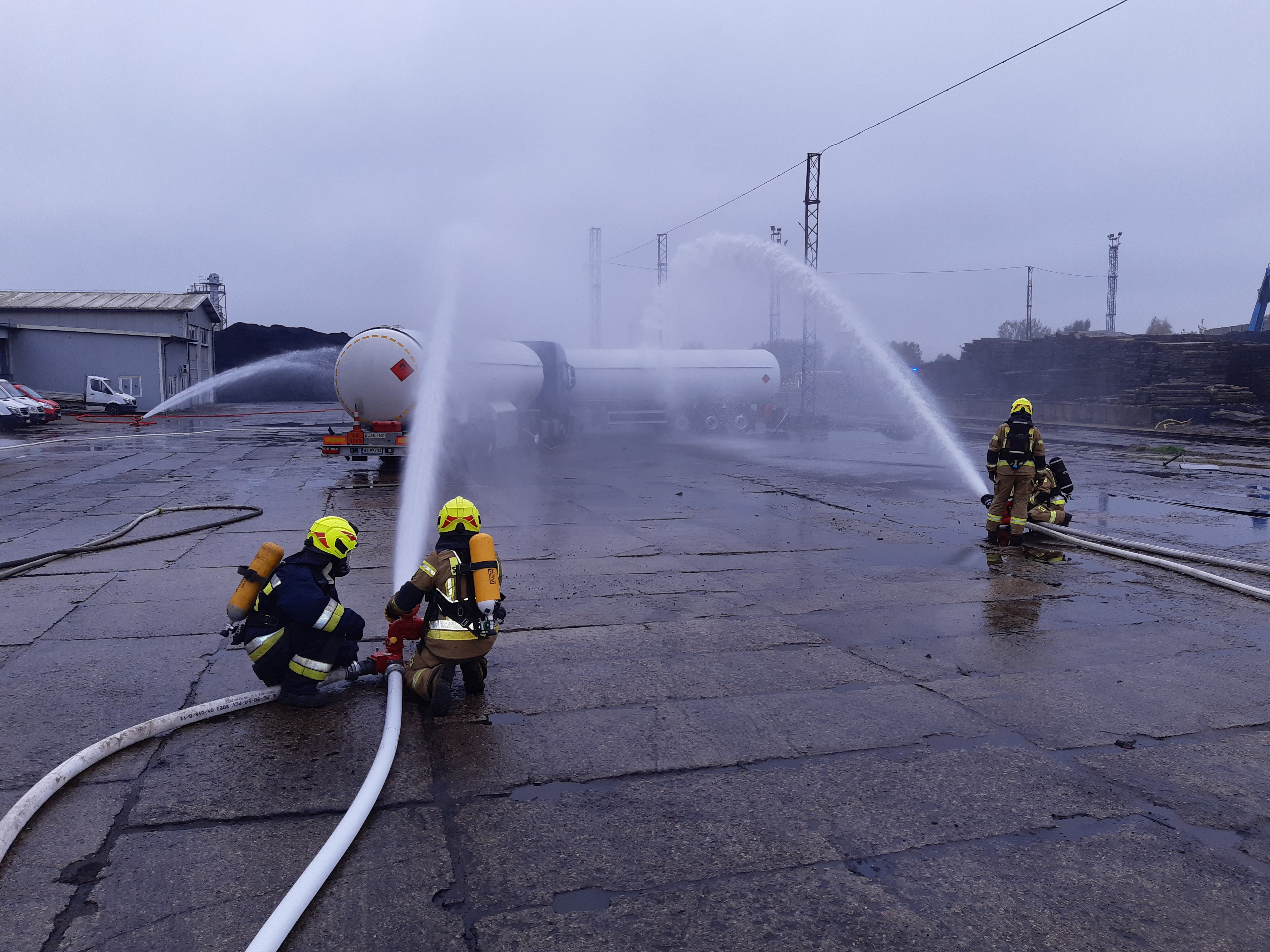 Po zauważeniu pożaru – zakład rozpoczyna realizację zadań przewidzianych w Wewnętrznym Planie Operacyjno – Ratowniczym na wypadek awarii, min. ogłasza alarm i zarządza ewakuację pracowników oraz informuje Stanowisko Kierowania Komendanta Powiatowego PSP w Sokółce. Ponadto pracownicy Terminalu ustawiają dwie kurtyny wodne w celu zabezpieczenia przed oddziaływaniem wysokiej temperatury pobliskich autocystern oraz budynków.