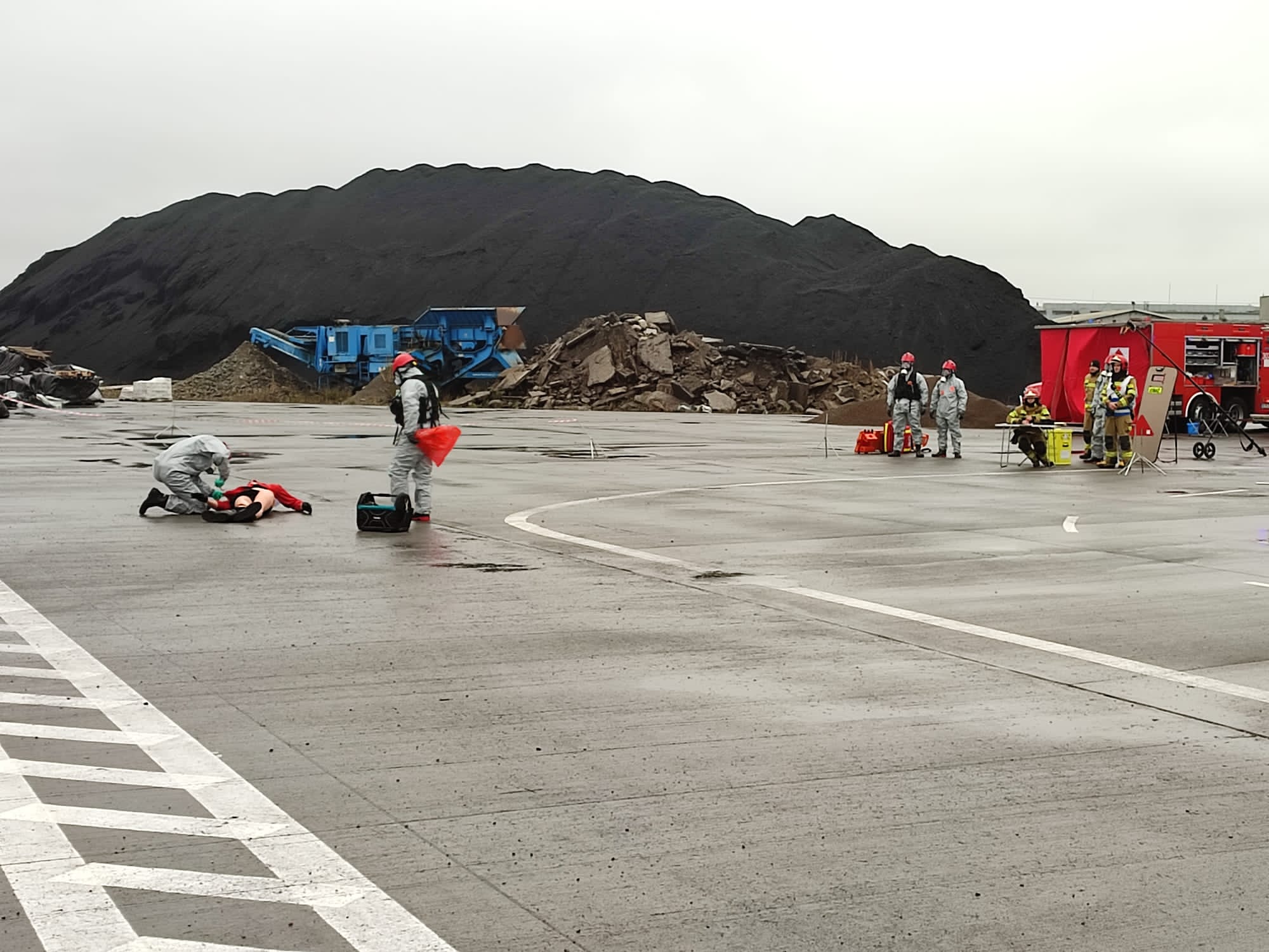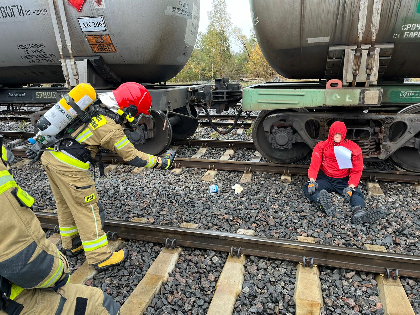 Dodatkowym elementem realizowanym ćwiczeń praktycznych było sprawdzenie przygotowania jednostek ochrony przeciwpożarowej do prowadzenia działań w przypadku wystąpienia zdarzeń radiacyjnych. Założenie do tego epizodu przyjmowało, że na teren Terminalu Intermodalnego w zakładzie przedostaje się osoba postronna, która odnajduje na jednym z wagonów niezidentyfikowany pakunek. Po jego rozpakowaniu znajduje puszkę oznaczoną symbolem radioaktywności. Do działań skierowana zostaje część sił prowadzących działania na terenie zakładu oraz zadysponowana zostaje Specjalistyczna Grupa Ratownictwa Chemiczno – Ekologicznego „Białystok” Centralnego Odwodu Operacyjnego. Zdaniem pierwszego przybyłego zastępu z JRG Sokółka było wykonanie podstawowych czynności ratowniczych polegających na wyznaczeniu strefy zagrożenia, wykonaniu pomiarów dozymetrycznych przy użyciu posiadanych mierników oraz ewakuacji osoby ze strefy awaryjnej w miejsce bezpieczne. Następnie po przybyciu SGRChem-Eko „Białystok” COO – zastępy z JRG 2 Białystok przystąpiły do realizacji specjalistycznych czynności ratowniczych, które polegały min. na pomiarze skażenia promieniotwórczego miejsca zdarzenia, osoby poszkodowanej oraz ratowników JRG Sokółka, przeprowadzeniu dekontaminacji osoby mającej kontakt z materiałem promieniotwórczym, podjęciu i zabezpieczeniu pakunku zawierającego materiał radioaktywny oraz przygotowaniu do przekazania do Zakładu Unieszkodliwiania Odpadów Promieniotwórczych.