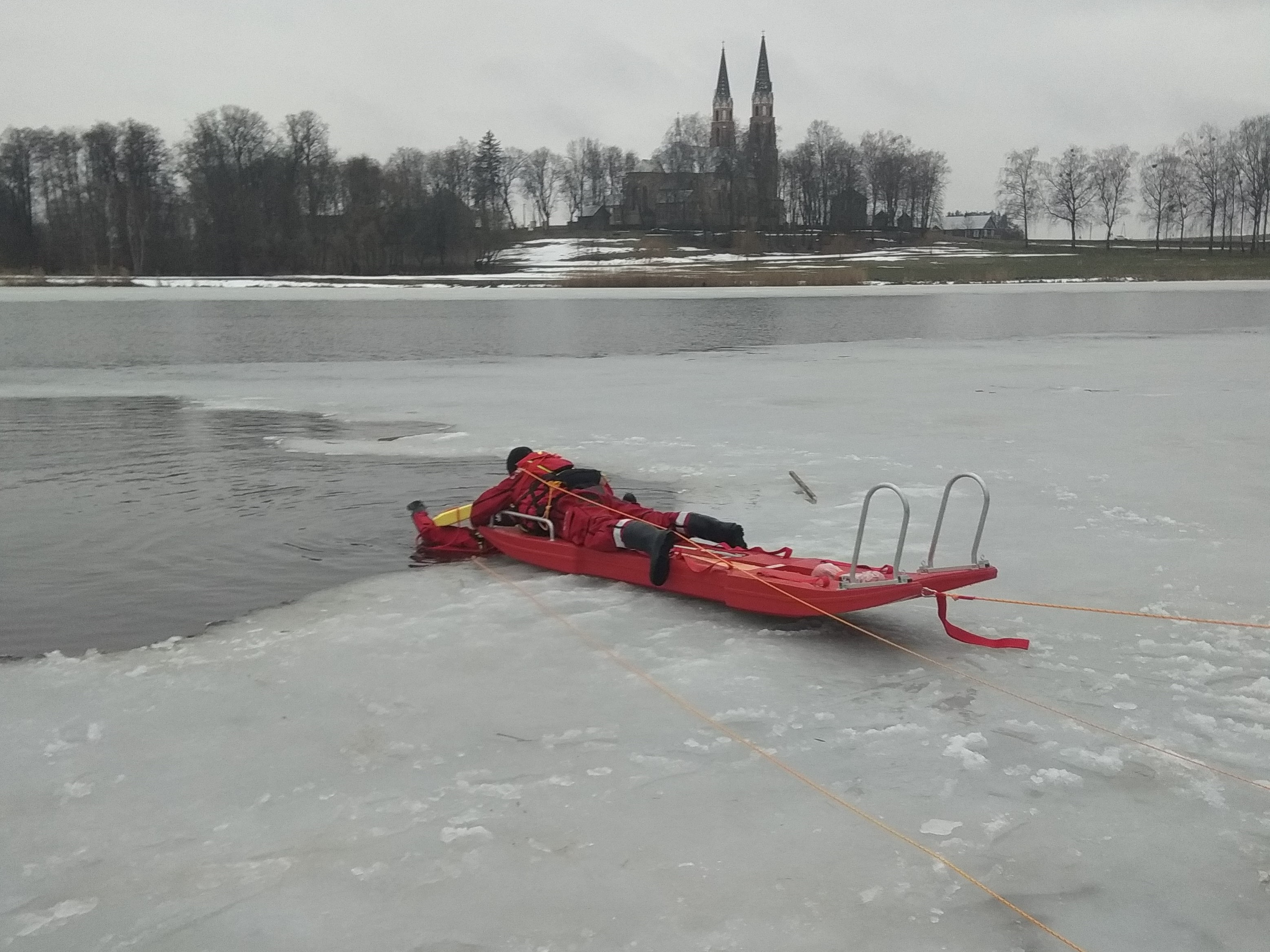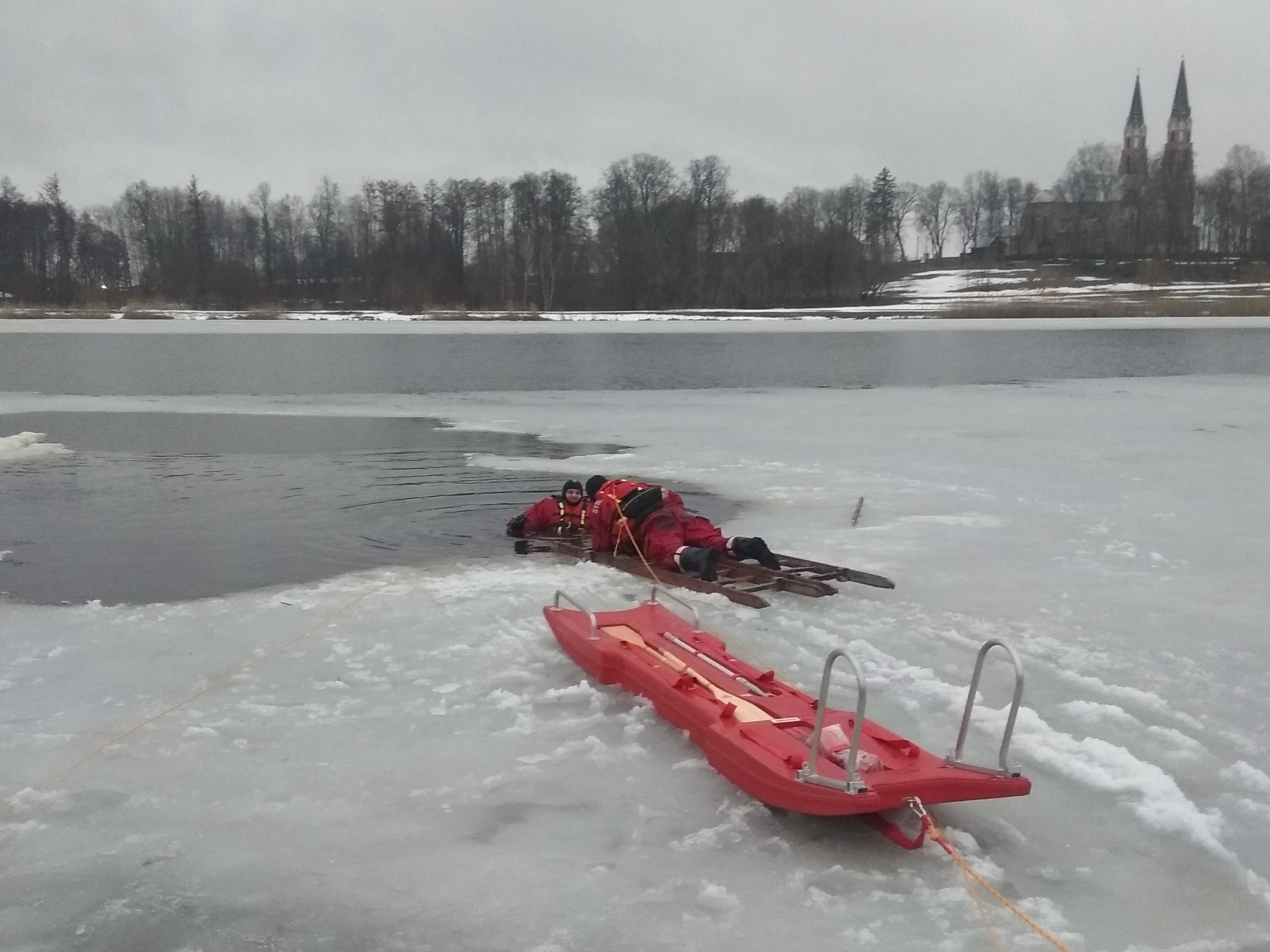 Ćwiczenia z zakresu ratownictwa lodowego w Korycinie