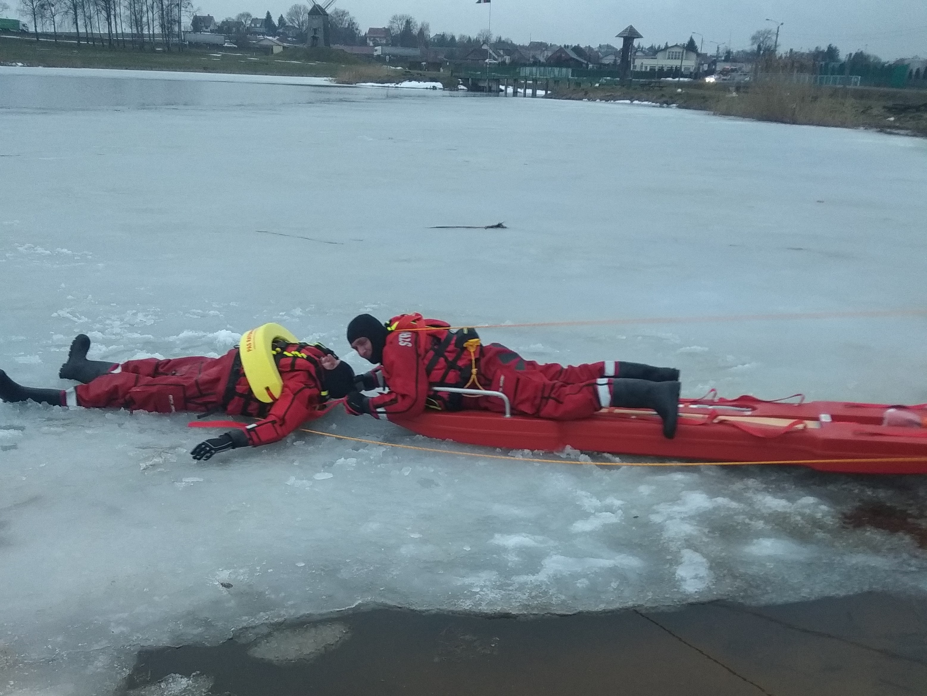 W trakcie zajęć prowadzonych przez instruktora z zakresu ratownictwa lodowego z JRG Sokółka praktycznie ćwiczono techniki i warianty ratowania osób pod którymi załamał się lód. Głównym zadaniem ćwiczących zastępów była pomoc osobie, która znalazła się w wodzie w wyniku załamania się tafli lodu na zbiorniku wodnym poprzez dotarcie do tonącego, podjęcie poszkodowanego z przerębla i ewakuacja na brzeg zalewu przy użyciu sań lodowych. W dalszej kolejności zostało przećwiczone samoratowanie oraz użycie do ratowania tonących sprzętu ratownictwa wodnego, a także innego dostępnego sprzętu ratowniczo – gaśniczego znajdującego się na wyposażeniu pojazdów pożarniczych.